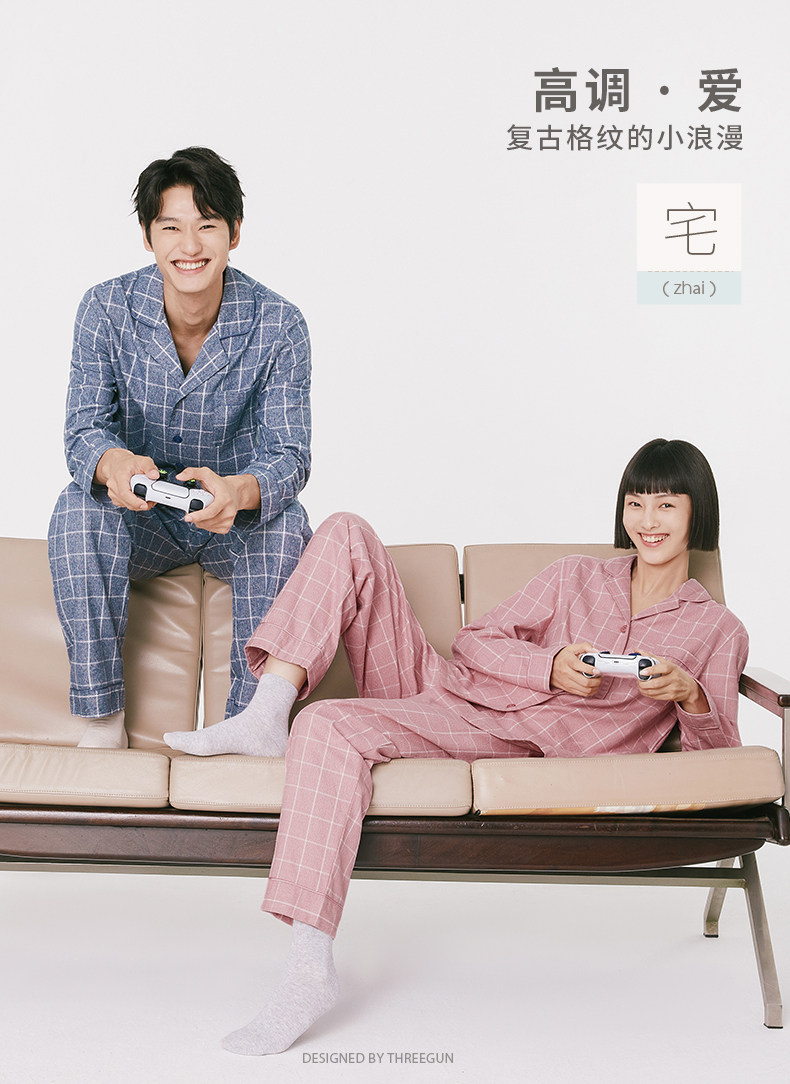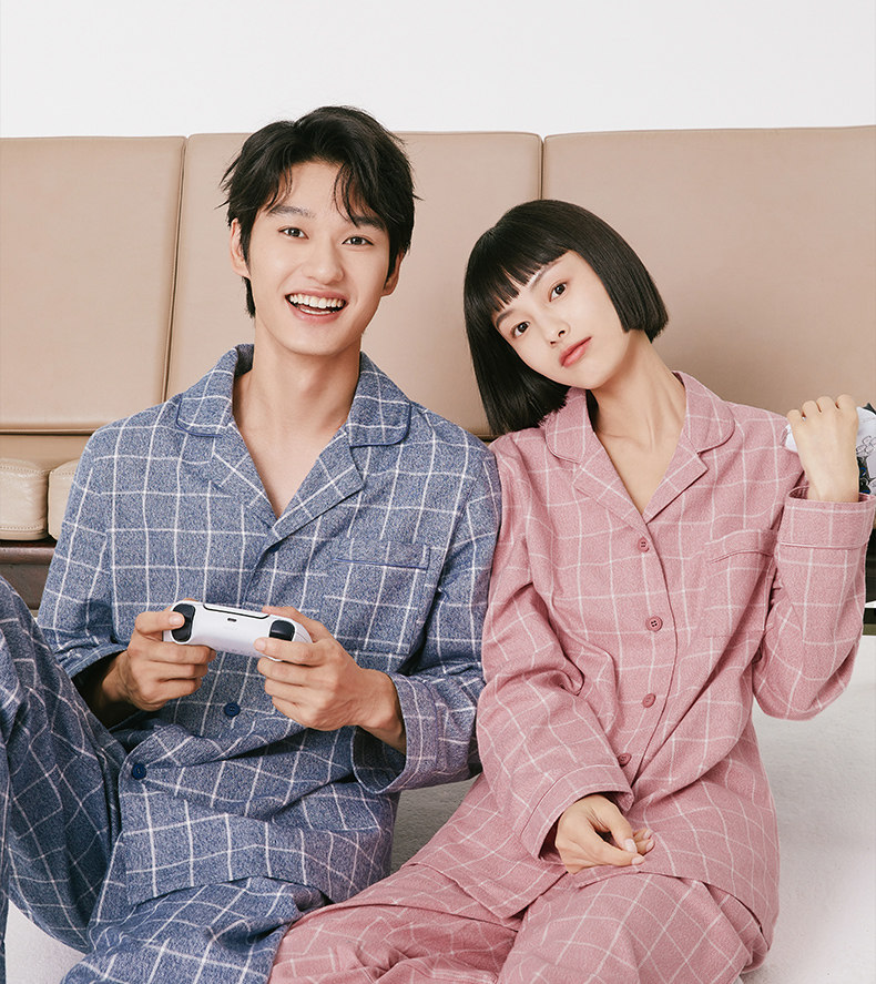 Хлопковая демисезонная пижама, лонгслив, штаны подходит для мужчин и женщин, комплект, для влюбленных