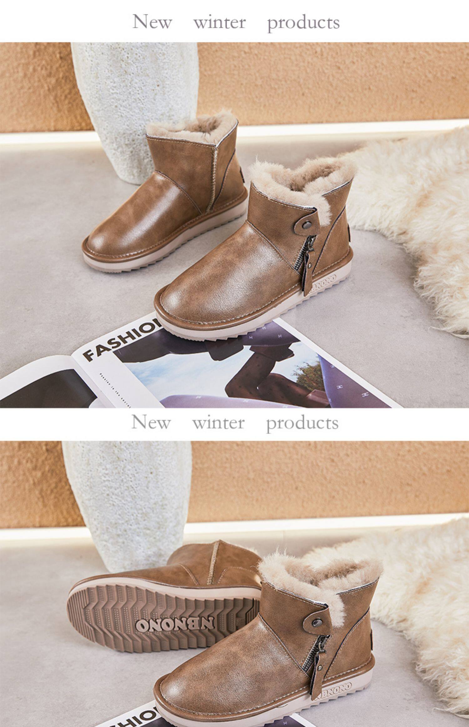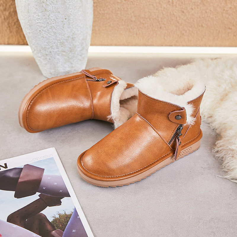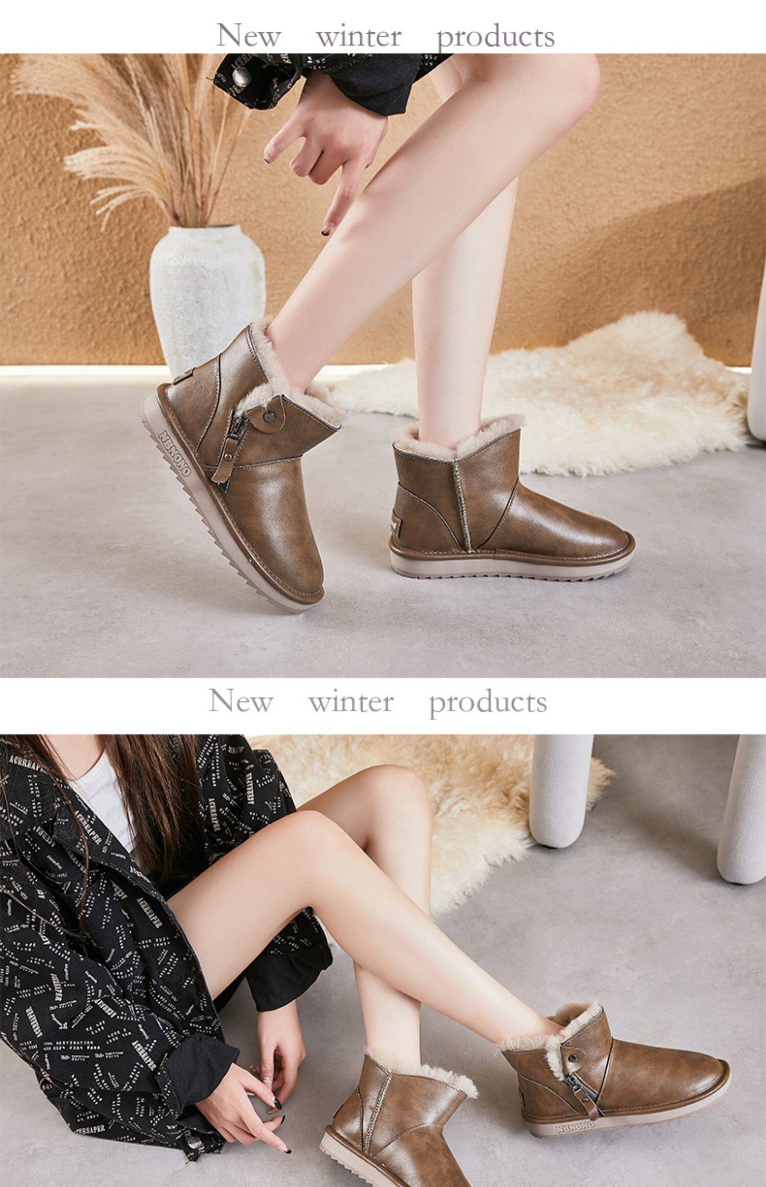 Кожаные сапоги, нескользящие утепленные модные удерживающие тепло ботинки, коллекция 2022