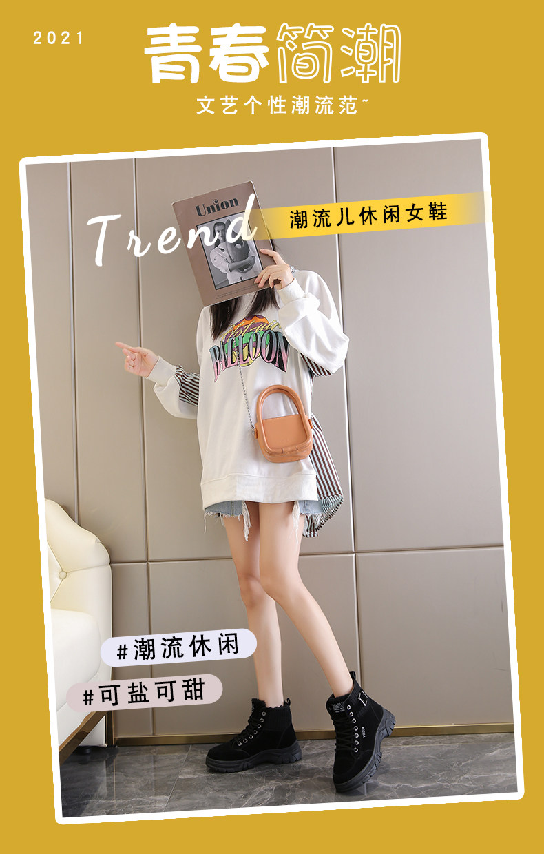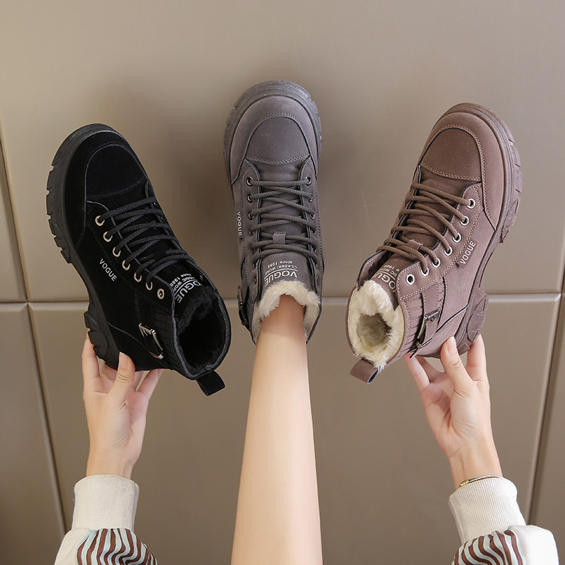 Женские хлопковые туфли на толстой подошве, зимние плюс бархатные утолщенные корейские версии, универсальные нескользящие водонепроницаемые ботинки Martin, новинка 2021 года, ботинки Martin в британском стиле.