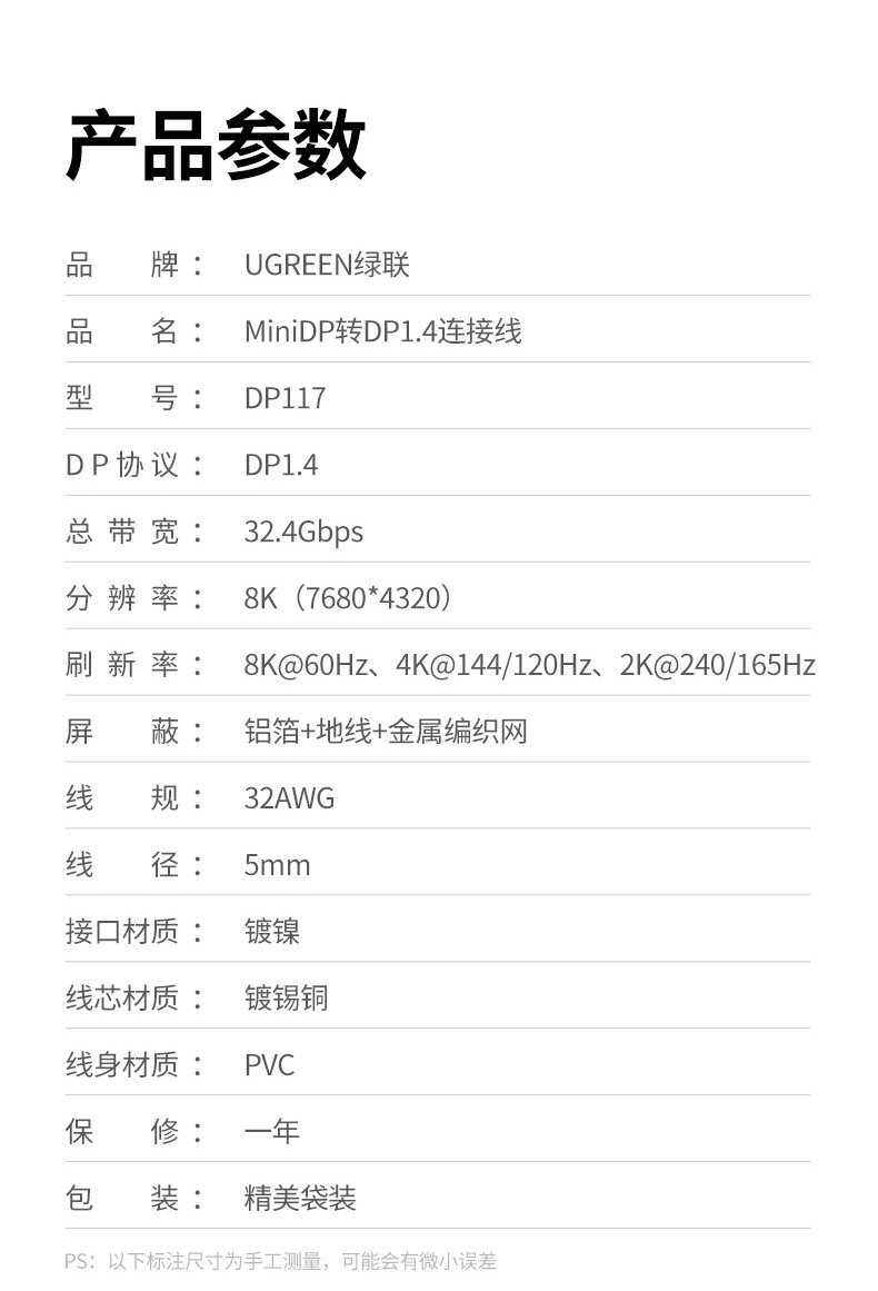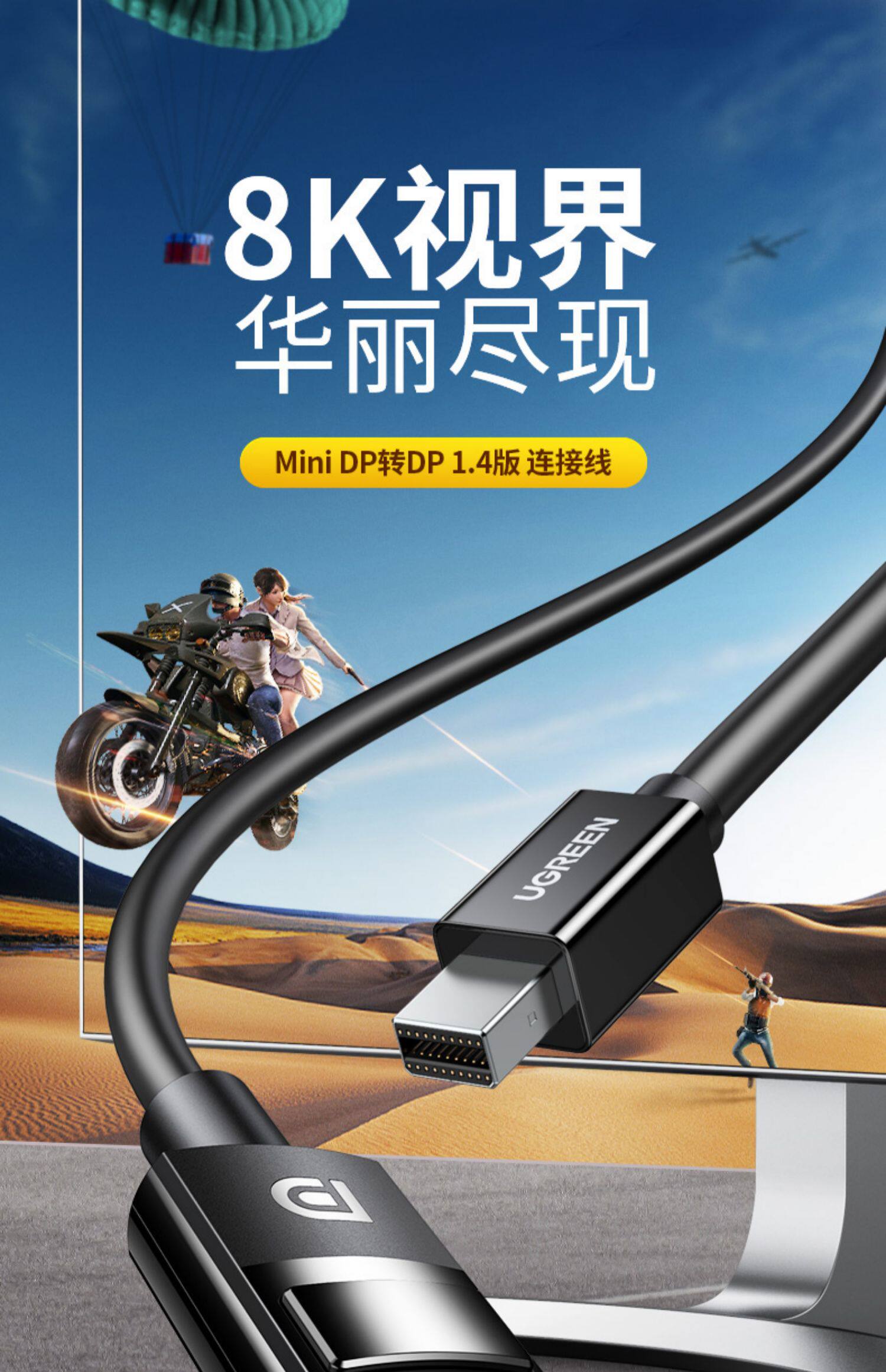 绿联 Minidp to DP Кабель Версия 1.4 8K HD 240/144 Гц Mini Displayport Thunderbolt 2 Интерфейс -адаптер монитор адаптера компьютер небольшой кабель DP