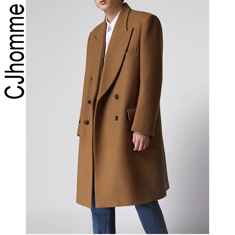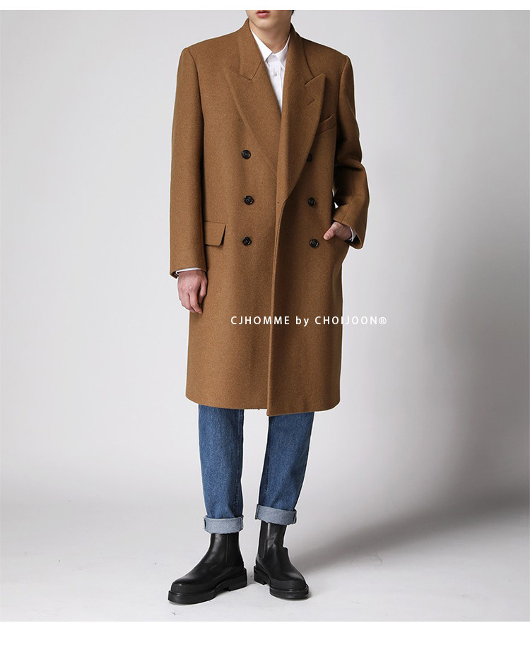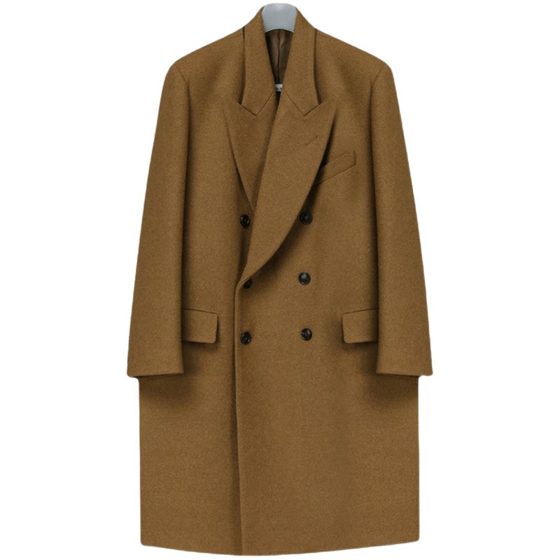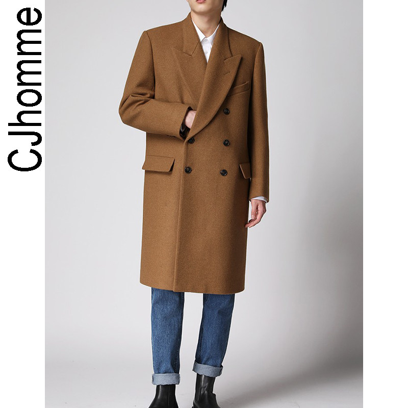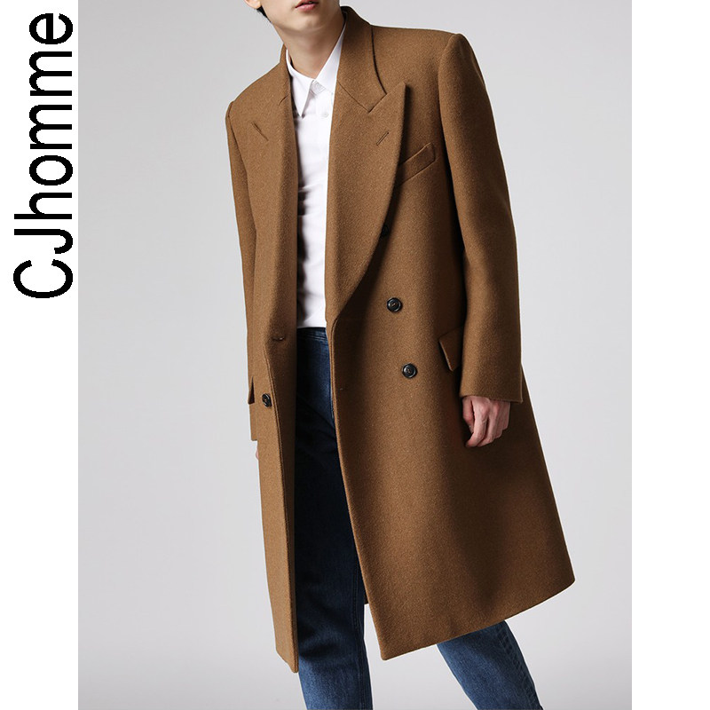 Демисезонное желтовато-коричневое универсальное шерстяное шерстяное пальто, в корейском стиле