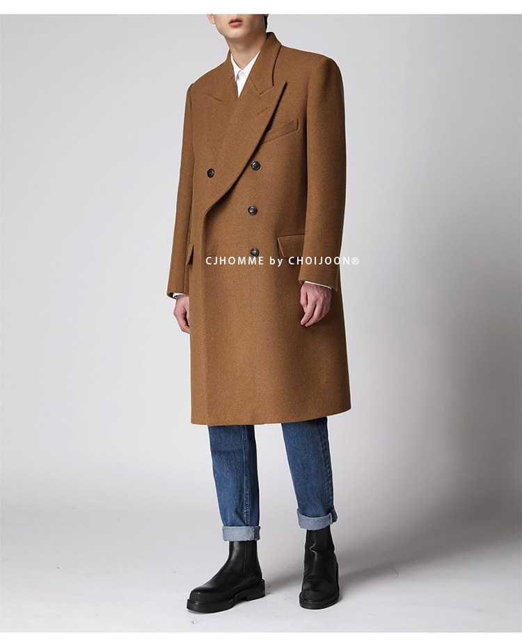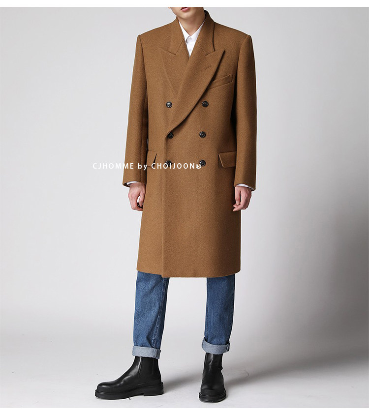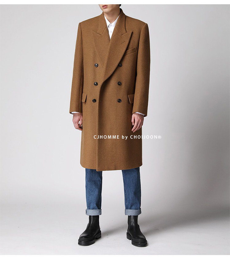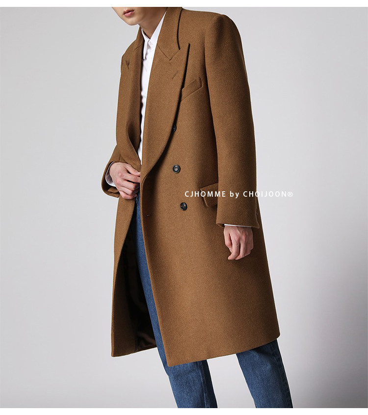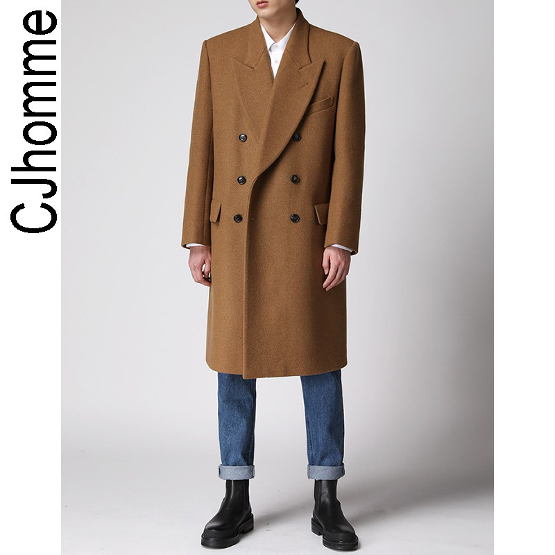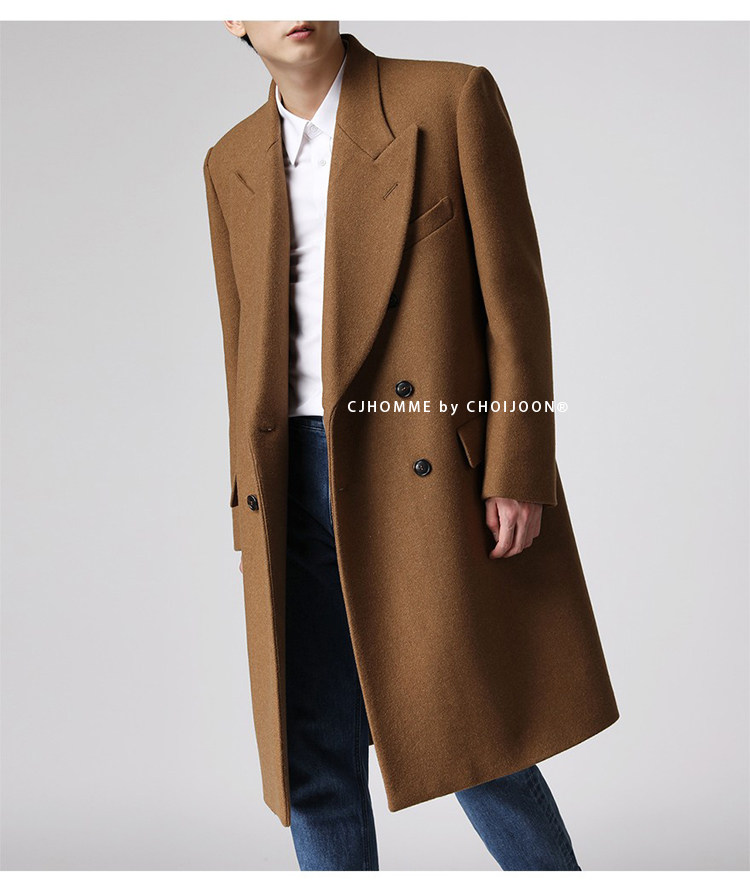 Демисезонное желтовато-коричневое универсальное шерстяное шерстяное пальто, в корейском стиле