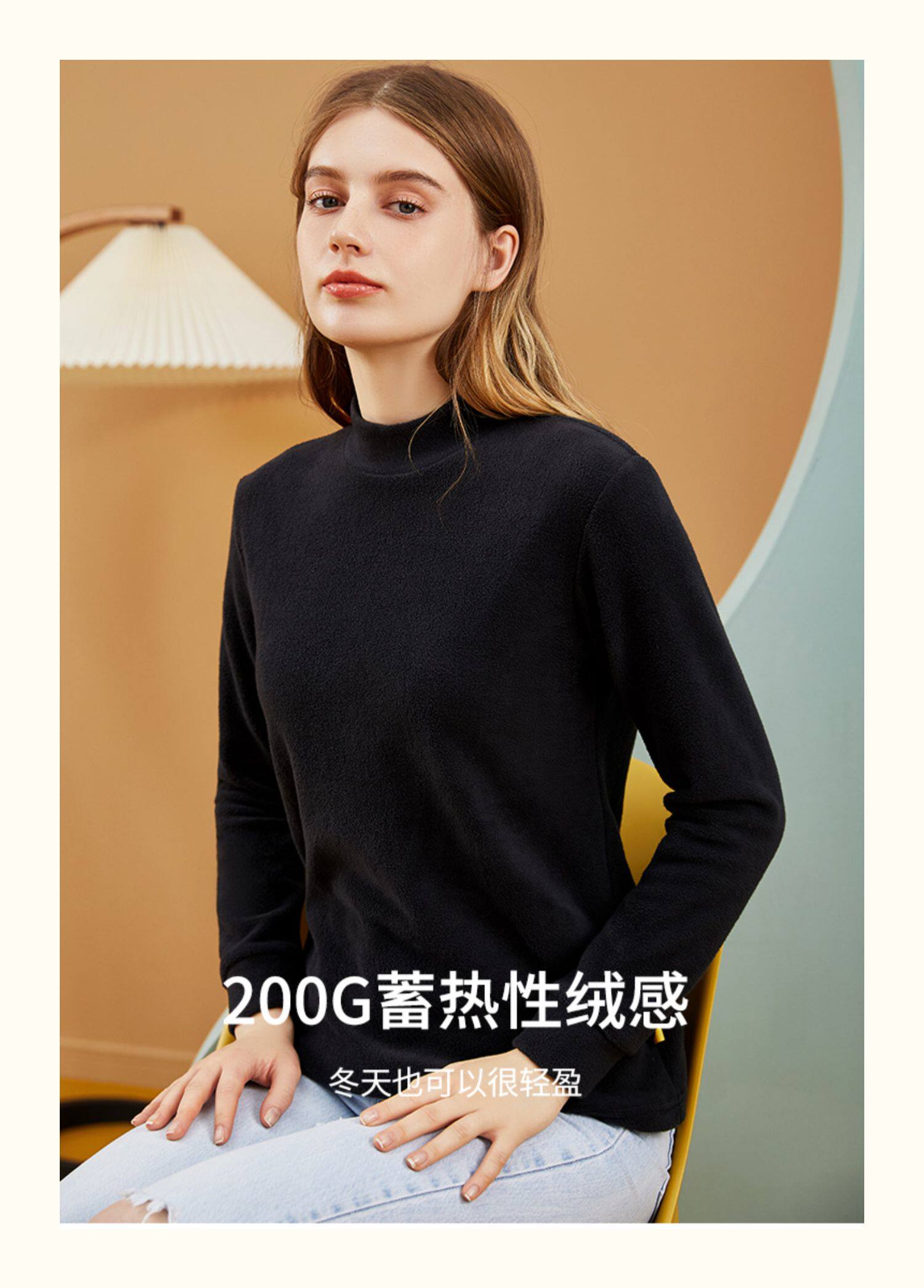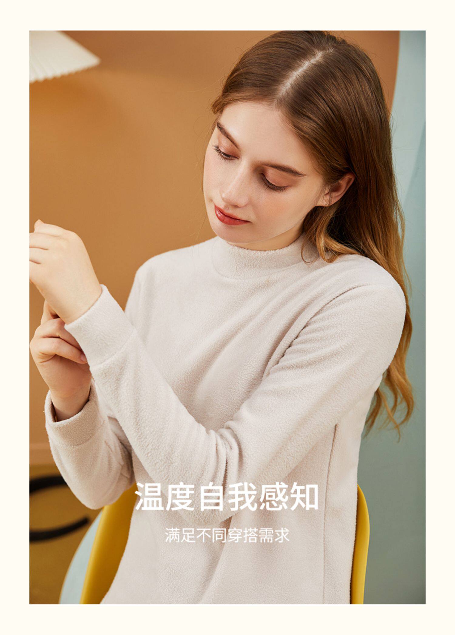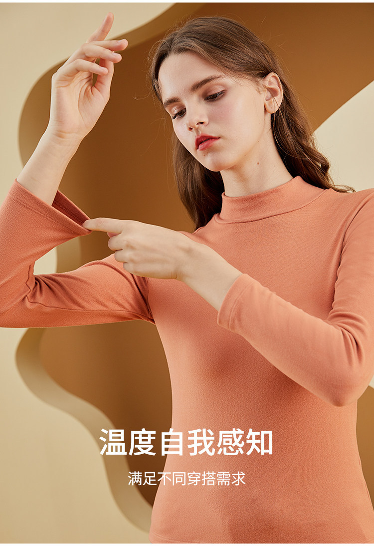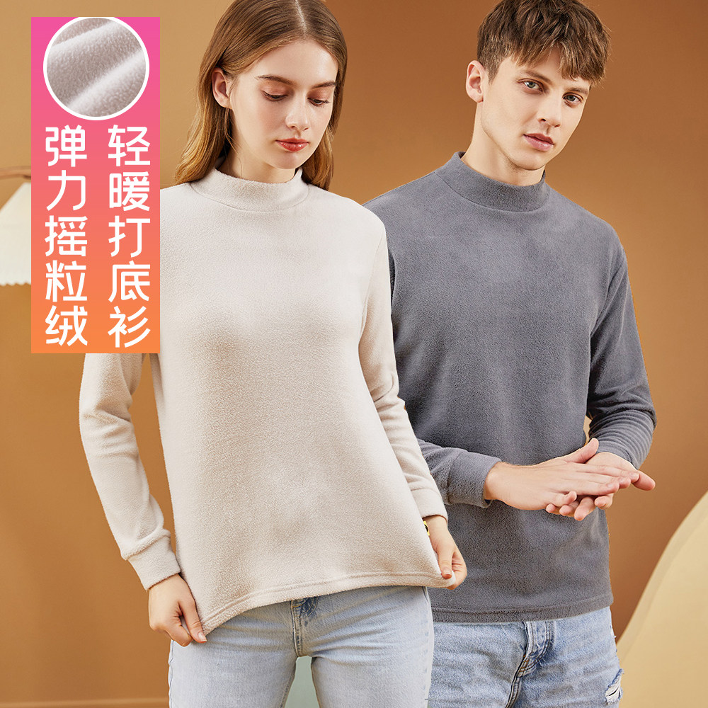 顶瓜瓜 Бархатное удерживающее тепло нижнее белье подходит для мужчин и женщин, демисезонное термобелье, базовый приятный телу бежевый лонгслив, увеличенная толщина, высокий воротник