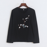 Лонгслив, весенняя толстовка, приятная телу футболка, с вышивкой, тренд сезона, оверсайз