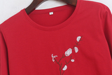 Круглый дизайн шеи вышита и вышита на груди