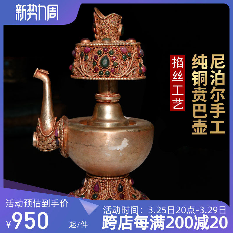 Санаданская царство непальская шелк чистый медный медь ручной работы вручную чистую чистую вставки инкрустации красочные жемчужины баба высокий 16см.