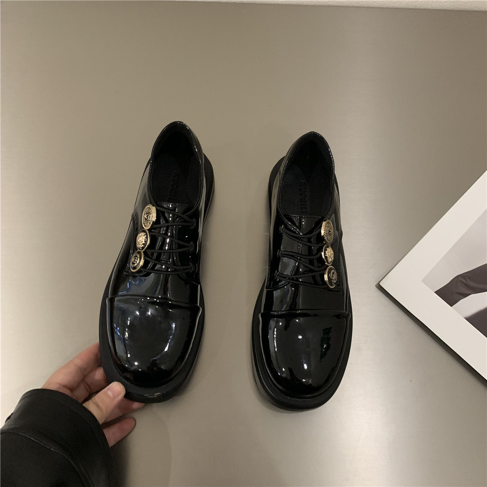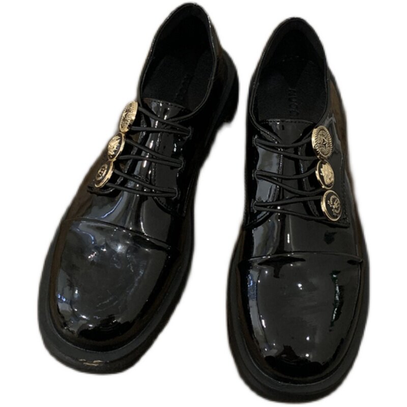 Дизайнерская летняя модная черная обувь в английском стиле для кожаной обуви на платформе, лоферы, в британском стиле, тренд сезона