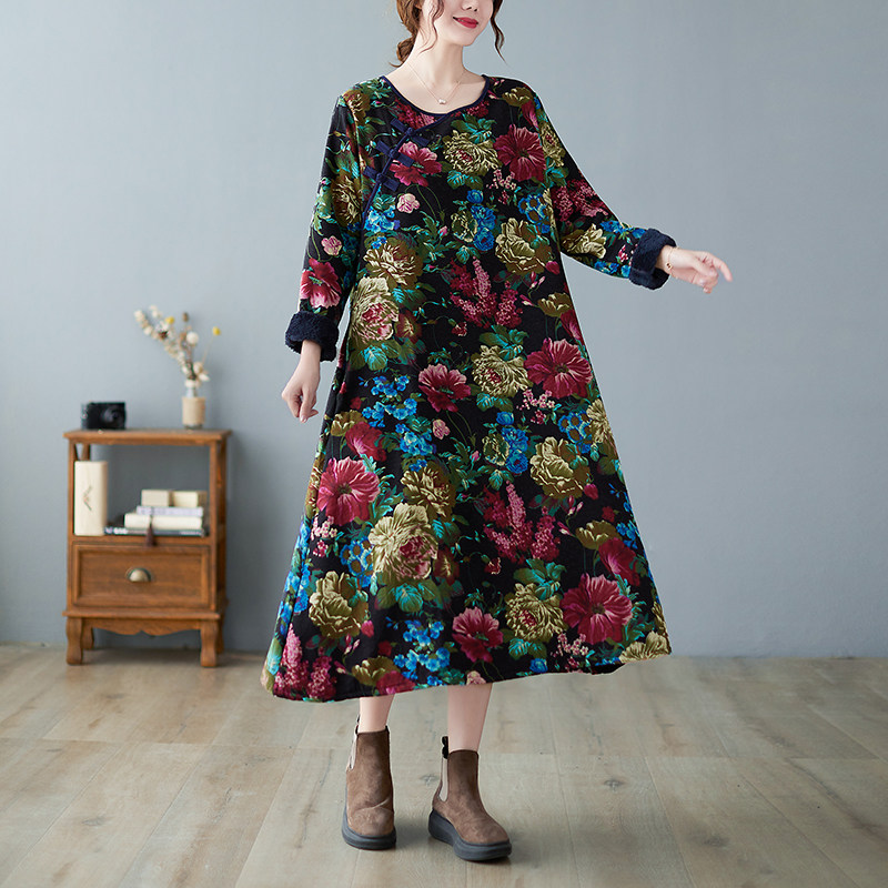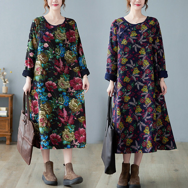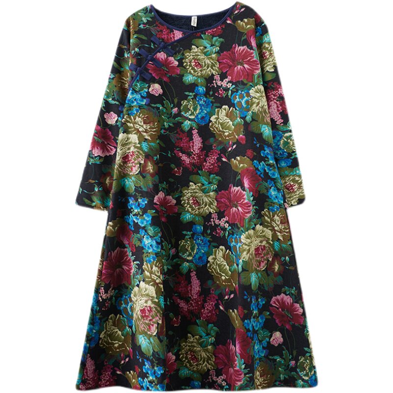 Этнический демисезонный лонгслив с круглым воротником, флисовое свободное платье, этнический стиль, большой размер, коллекция 2021