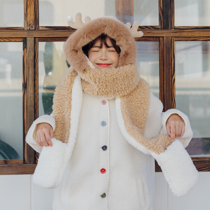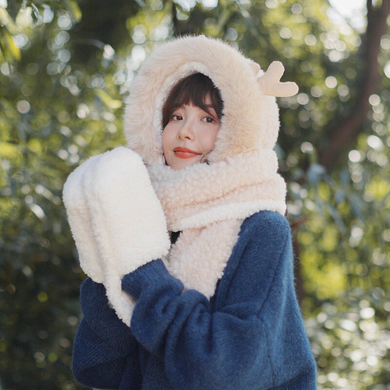 Милый шарф, перчатки, шапка, комплект, увеличенная толщина, 3 предмета