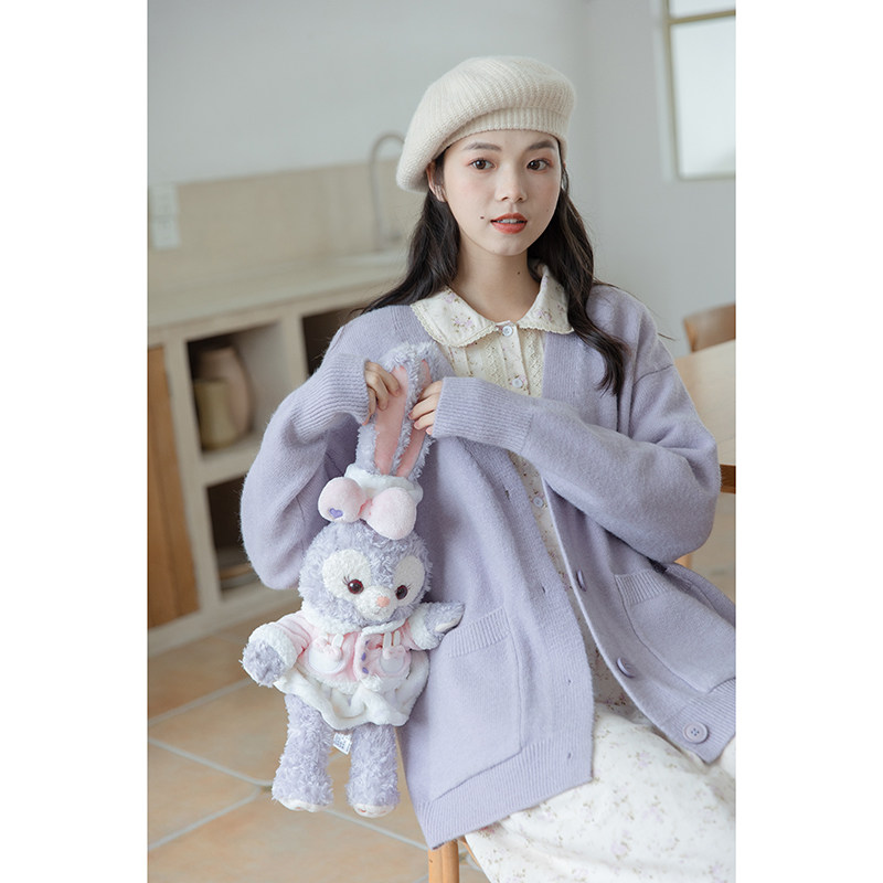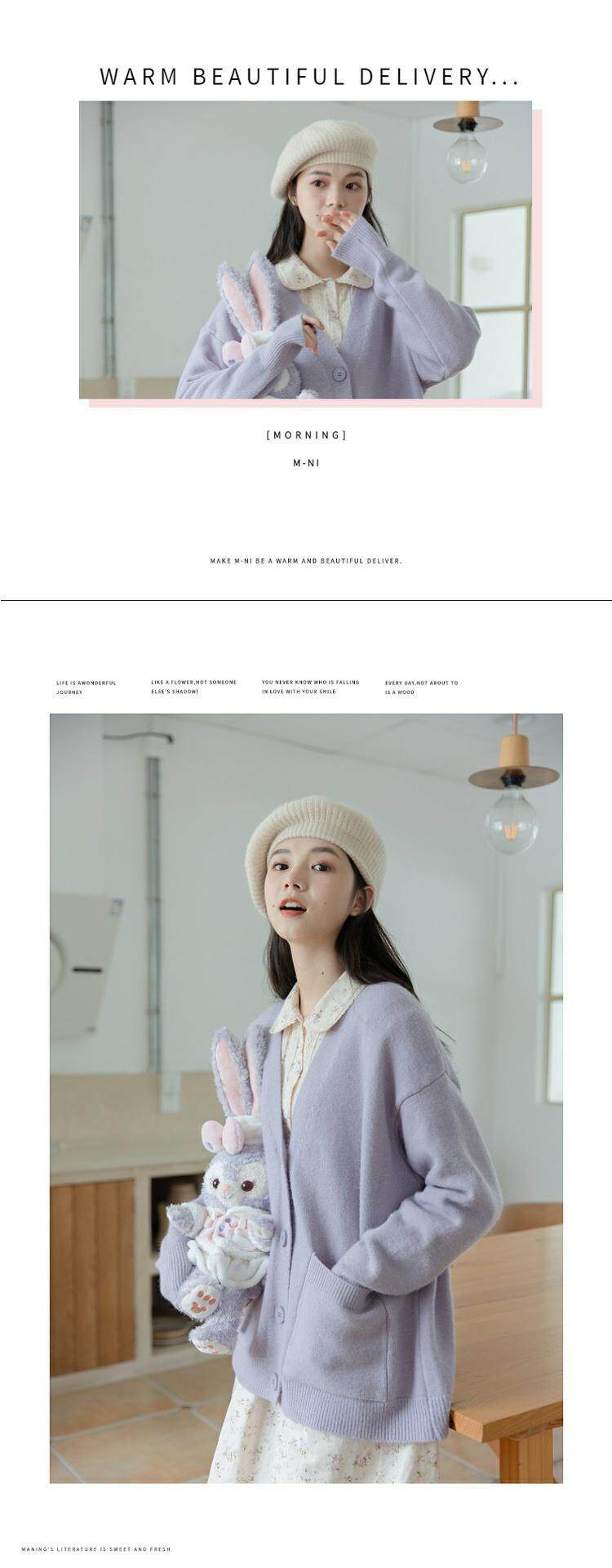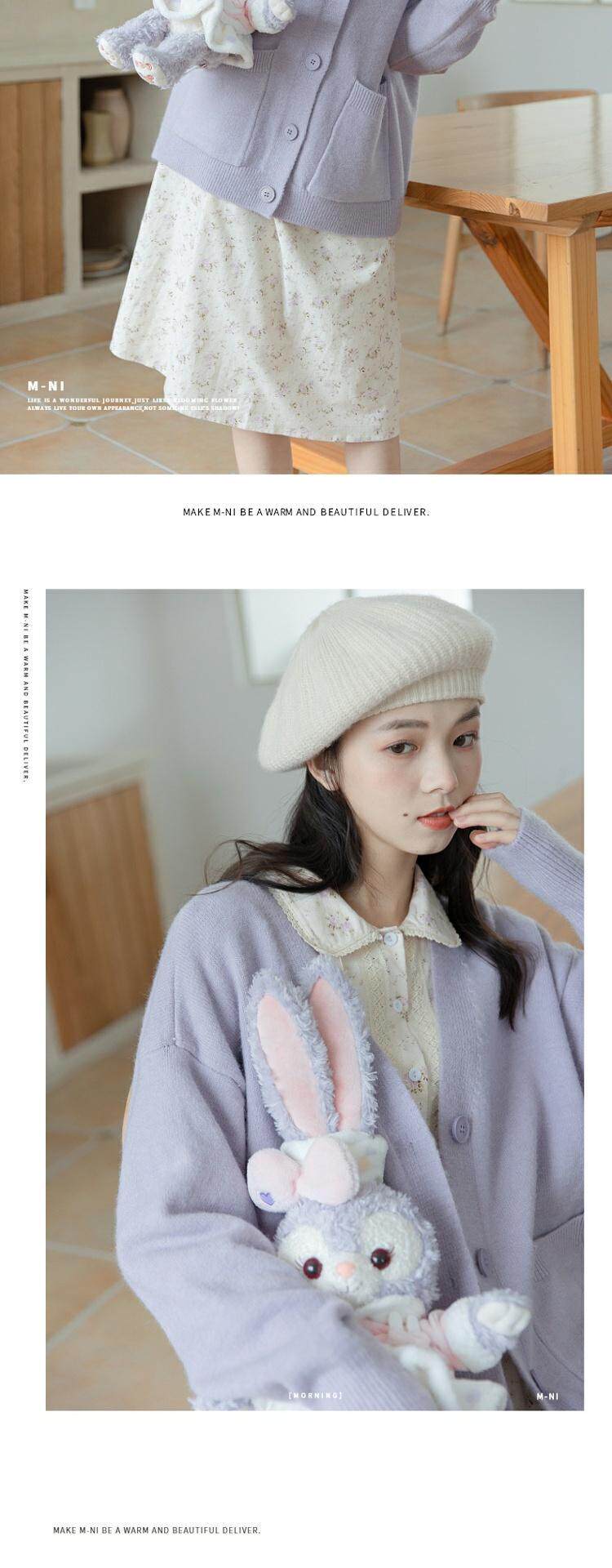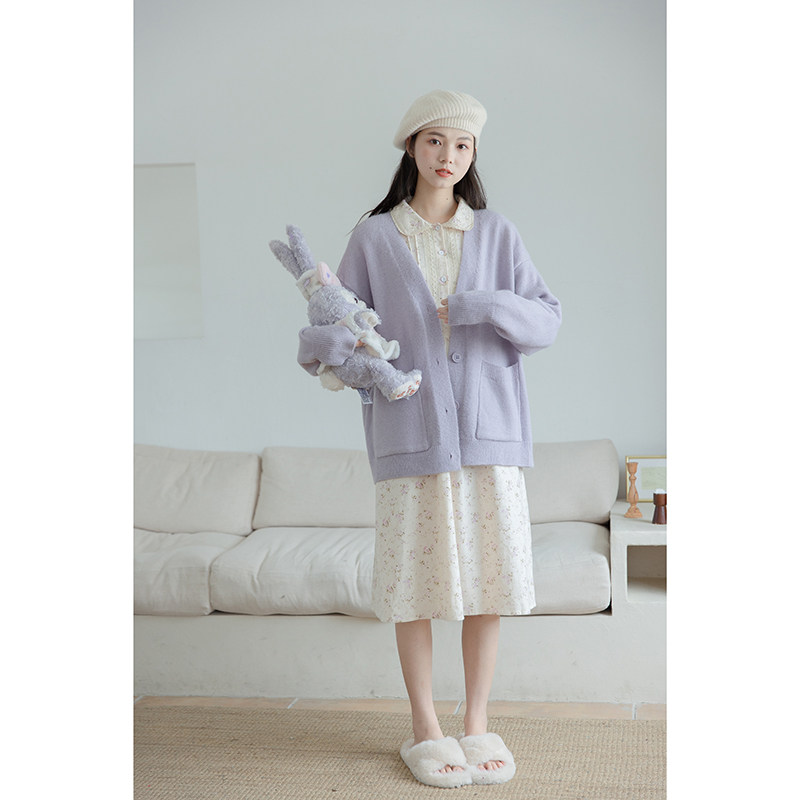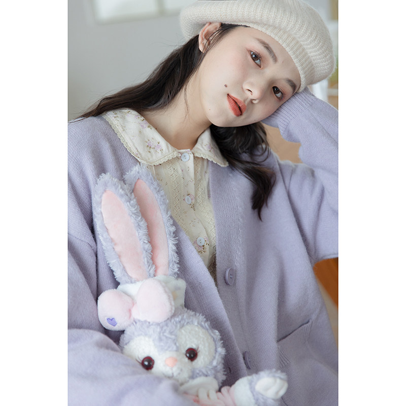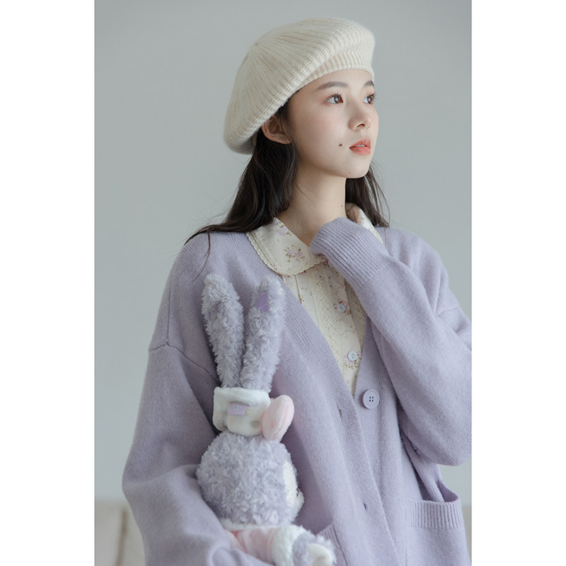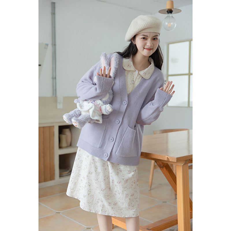 Сиреневый трикотажный свитер, кардиган, весенняя модная куртка, милый брендовый лонгслив, тренд сезона, в западном стиле