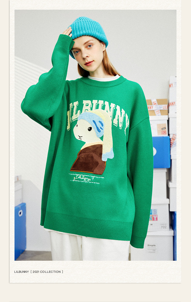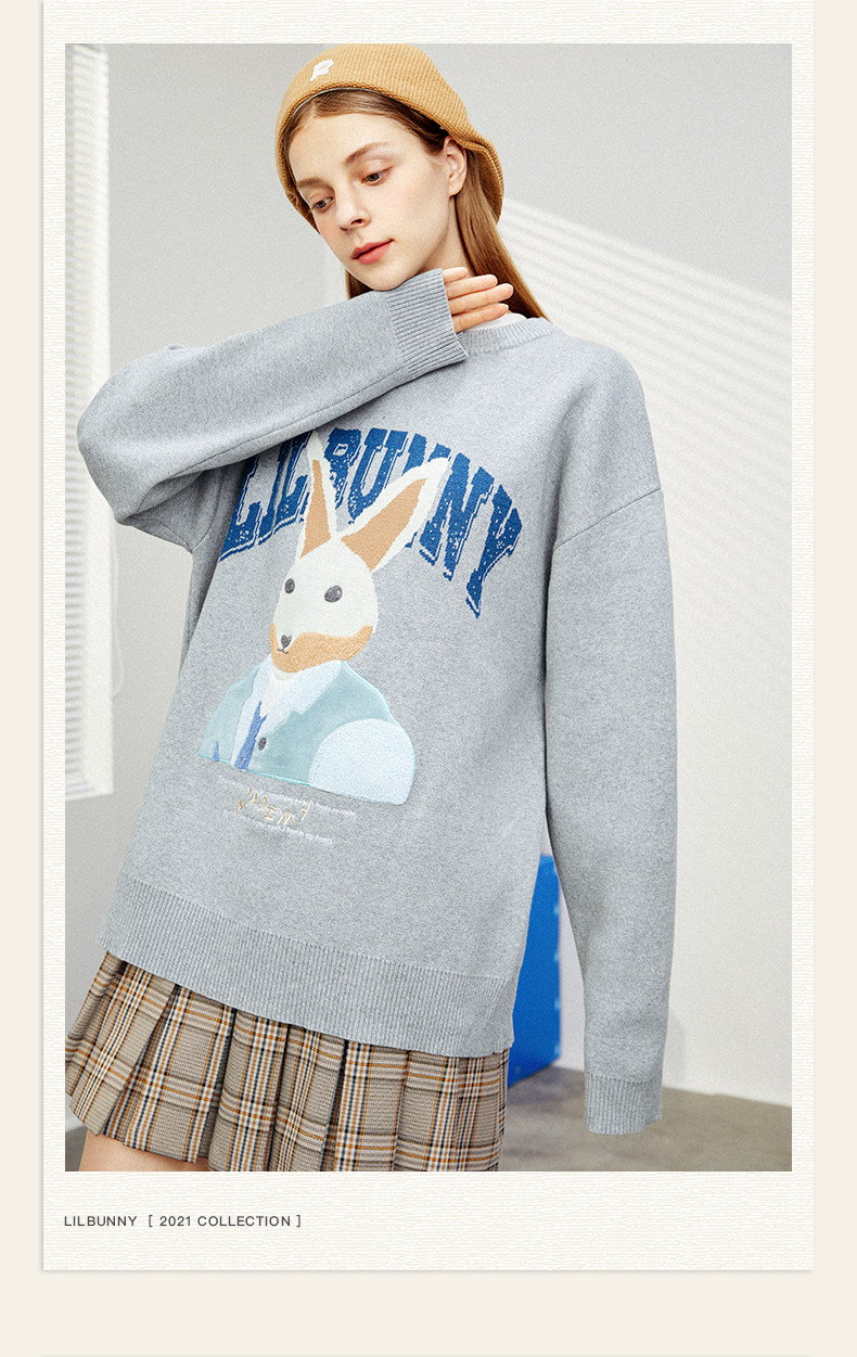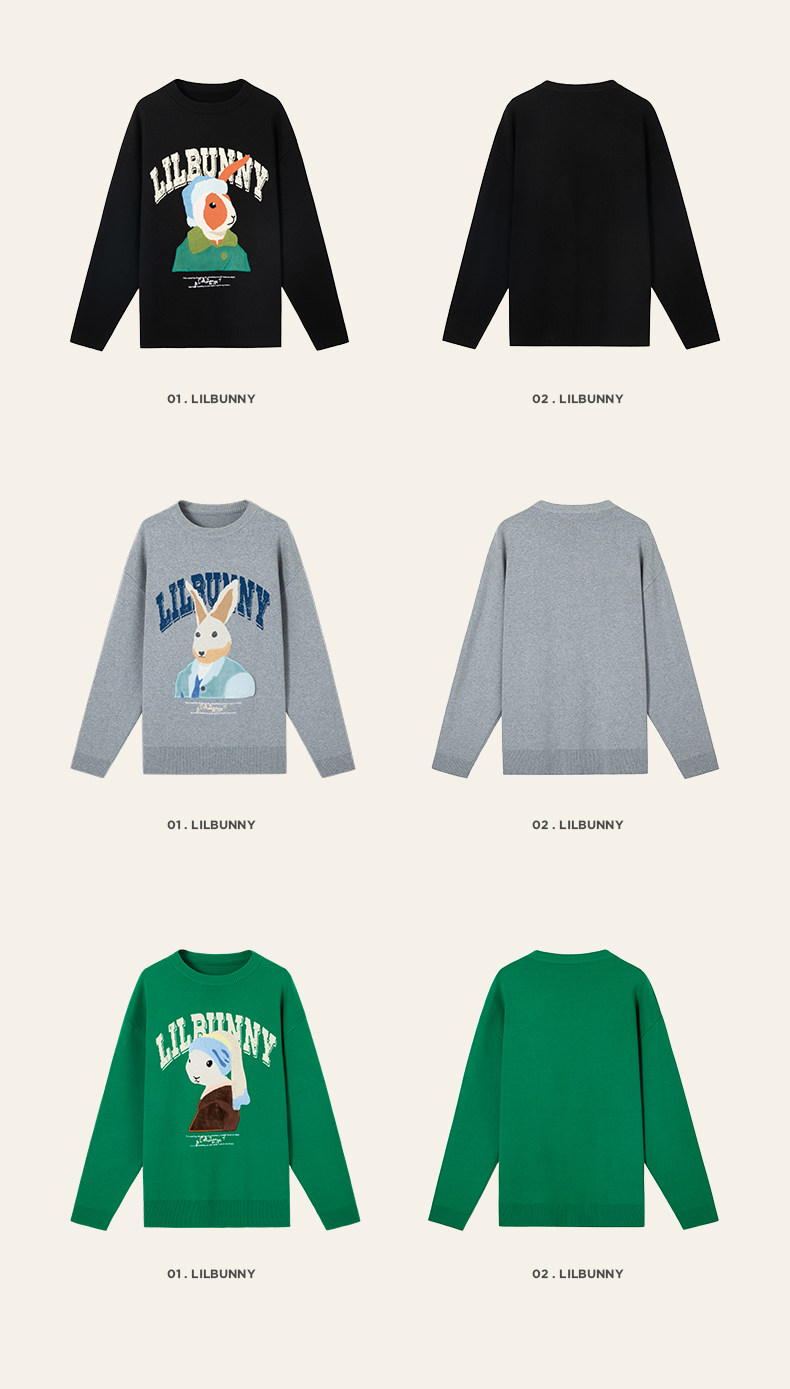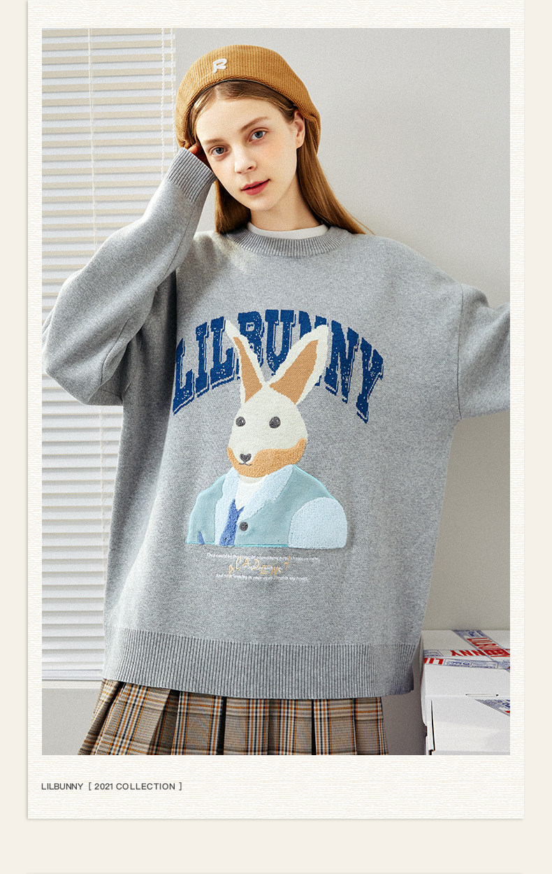 Кролик, свитер, демисезонное трикотажное мультяшное шерстяное термобелье с круглым воротником, коллекция 2023