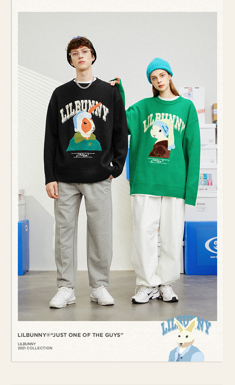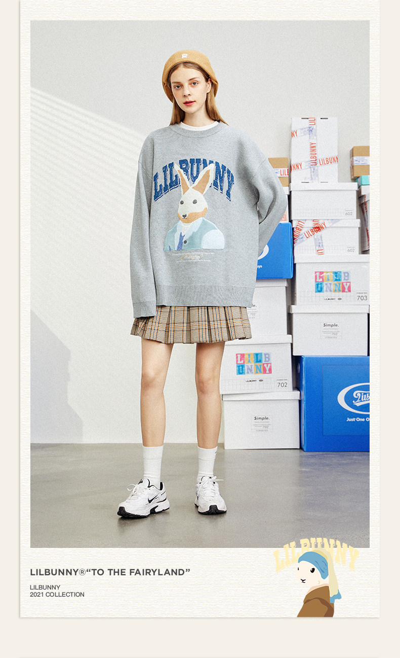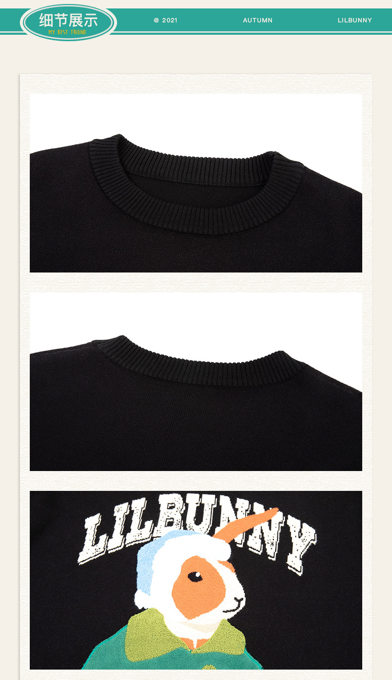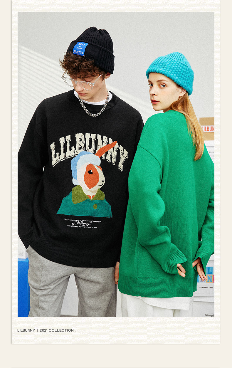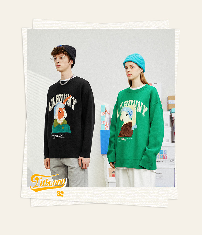 Кролик, свитер, демисезонное трикотажное мультяшное шерстяное термобелье с круглым воротником, коллекция 2023