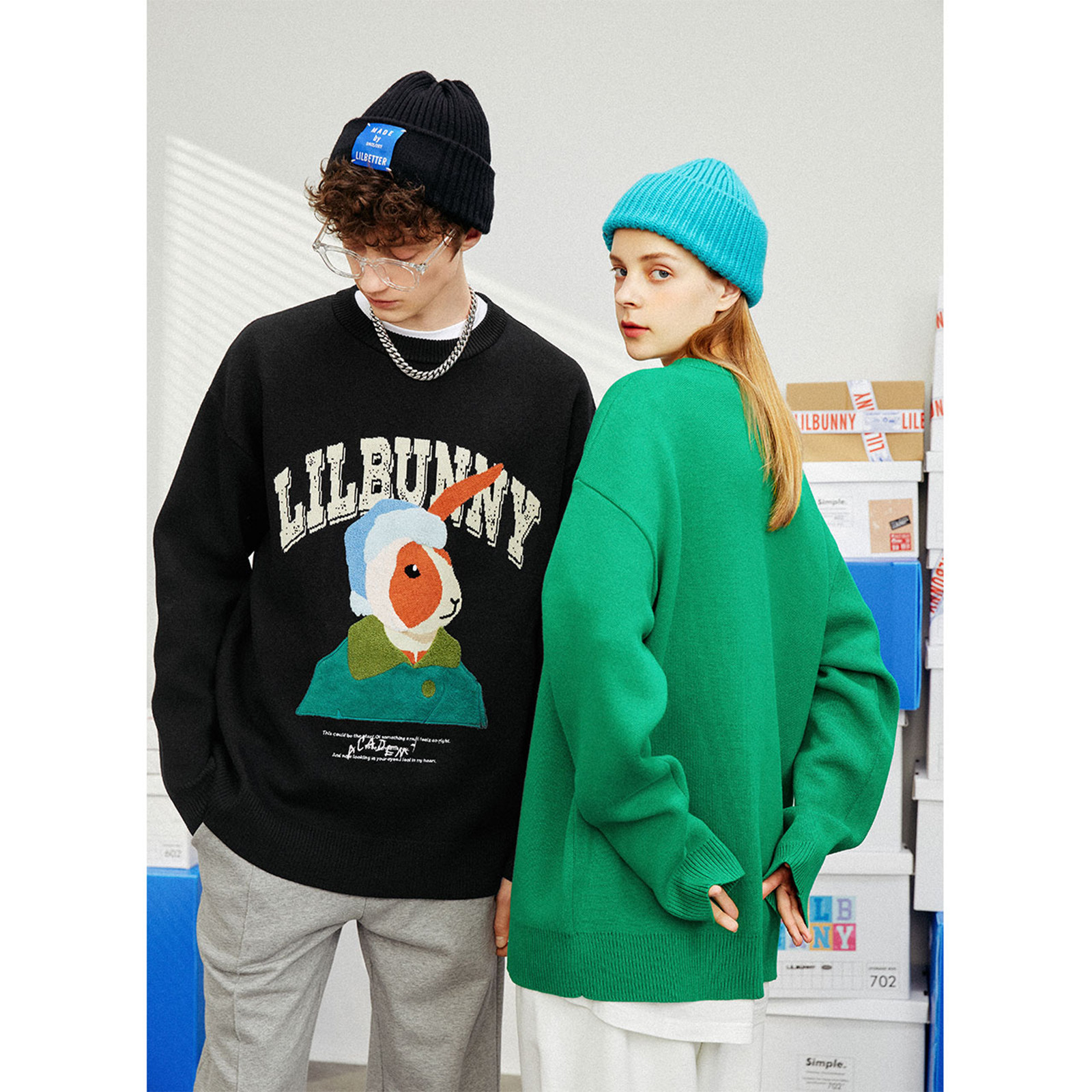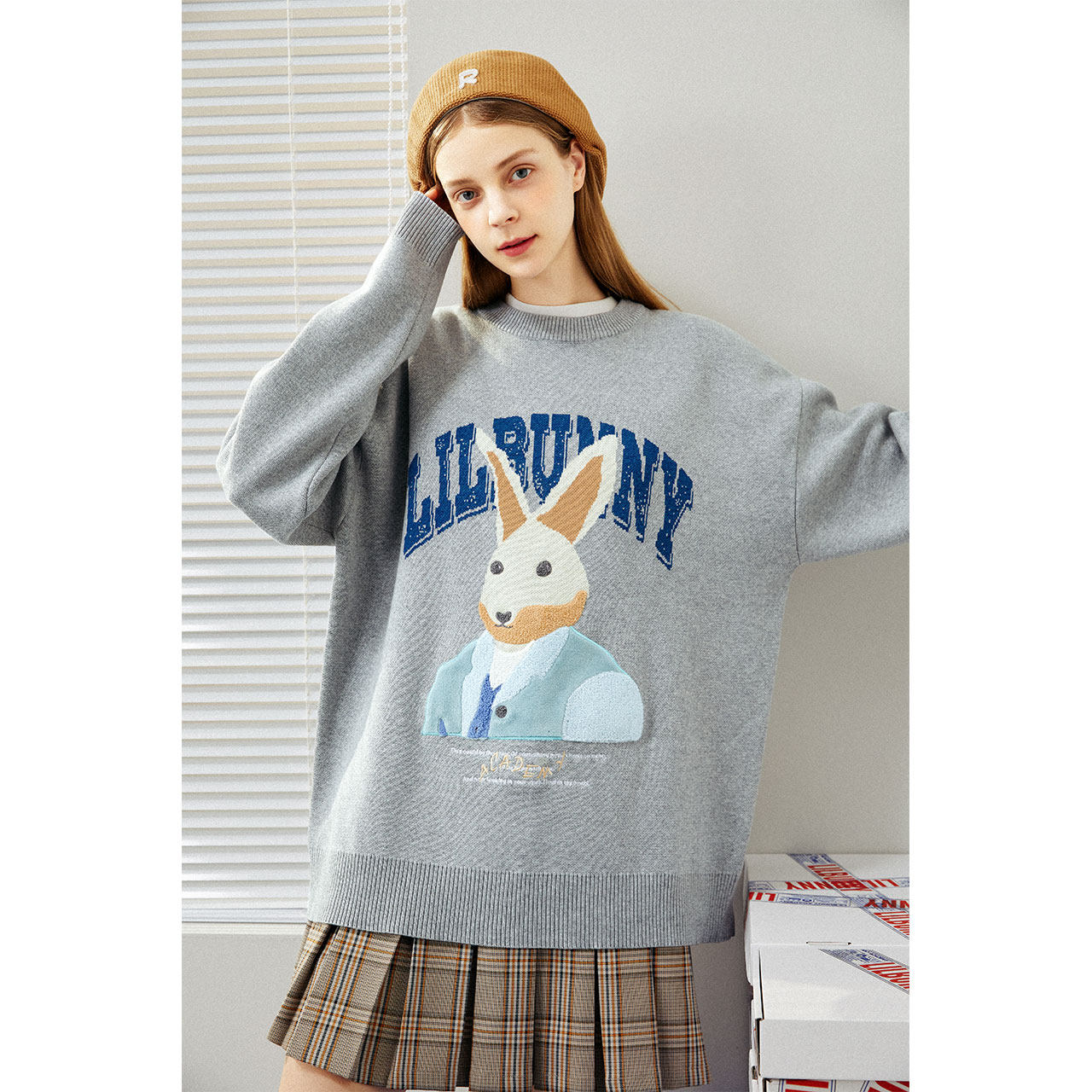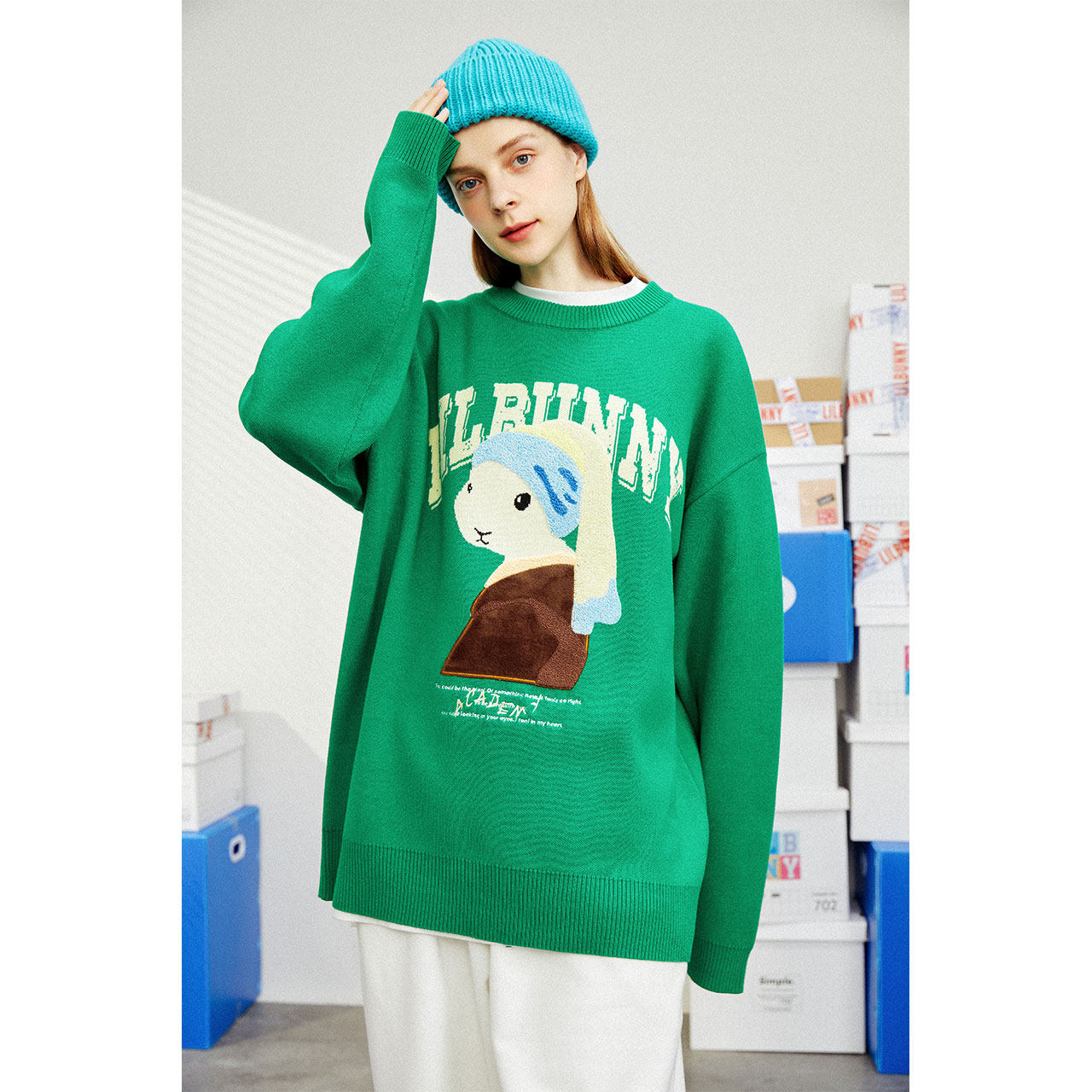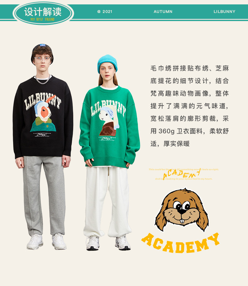 Кролик, свитер, демисезонное трикотажное мультяшное шерстяное термобелье с круглым воротником, коллекция 2023