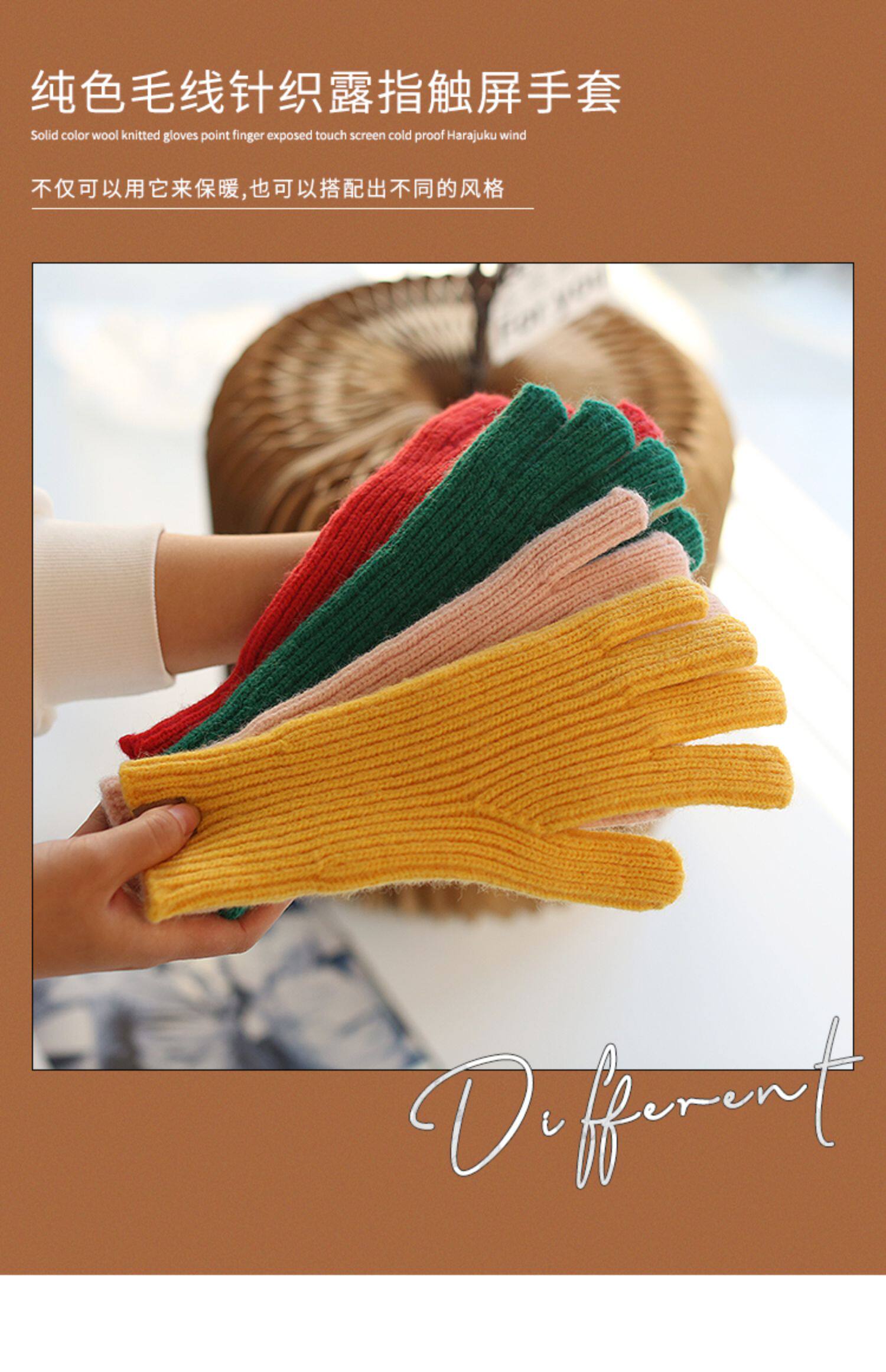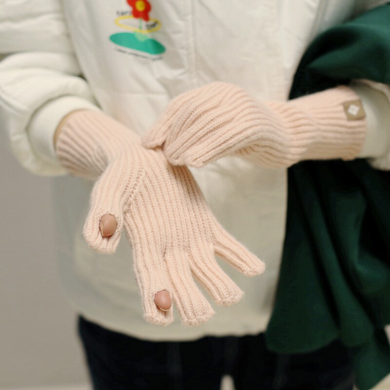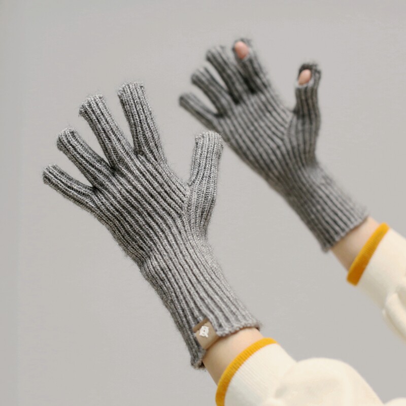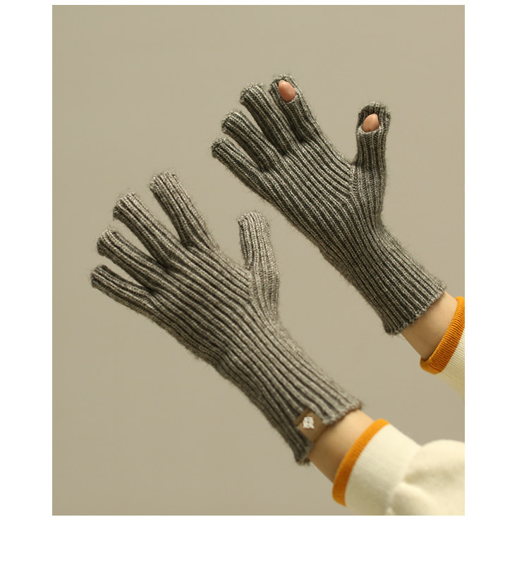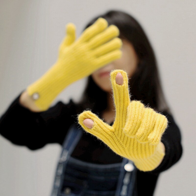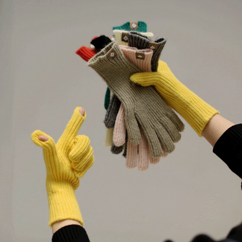 Осень Миньянский чистый цвет шерстяные перчатки в зимнем согревании Студенты Женские модные вязаные носки для рук обнажали два пальца с сенсорным экраном мужской тренд