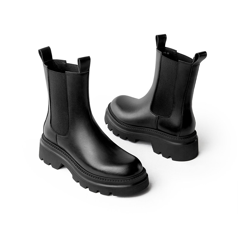 Демисезонные короткие сапоги на платформе в английском стиле, челси, коллекция 2021, в британском стиле, средней длины