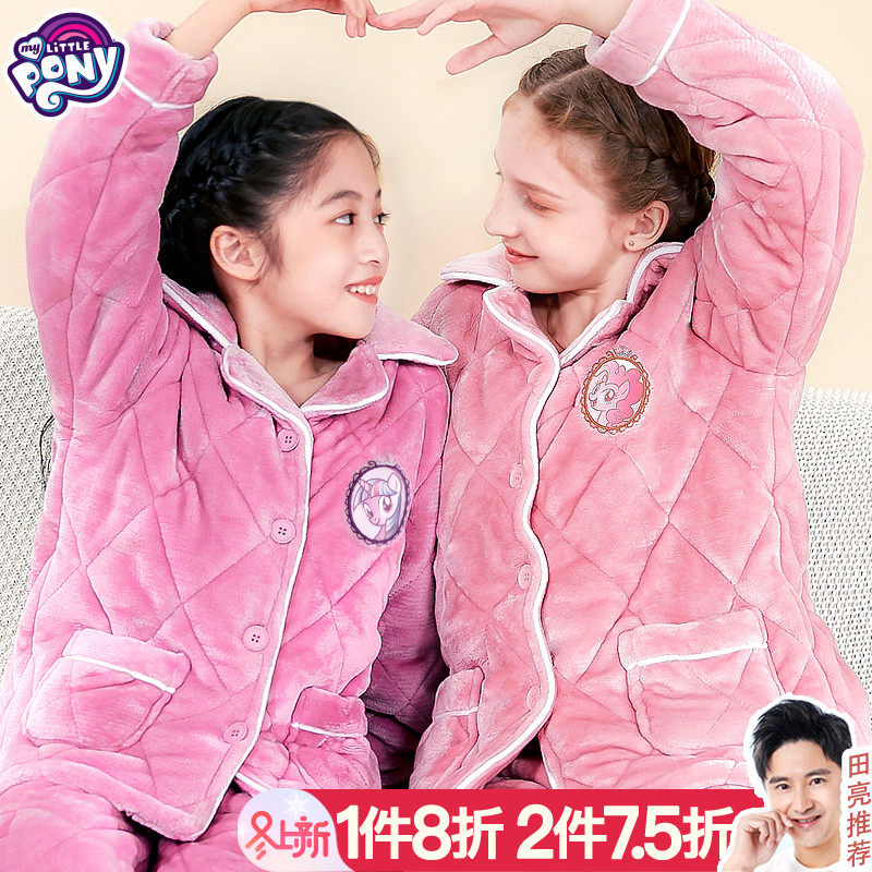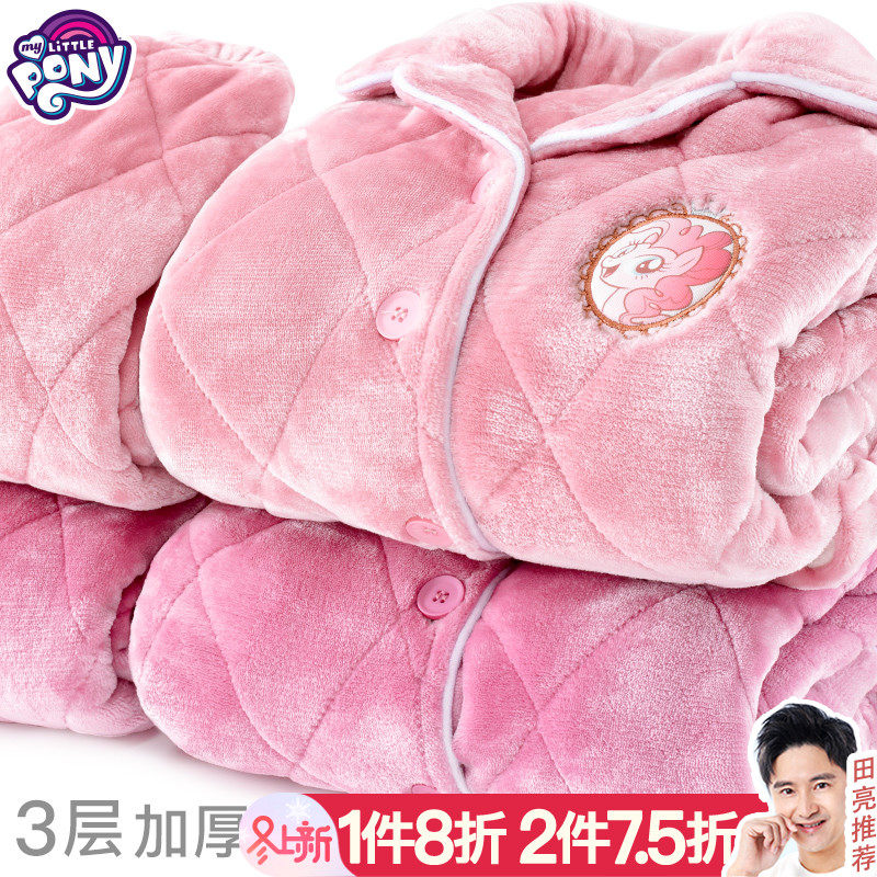 Пони, коралловая бархатная утепленная пижама, фланелевый детский комплект, форма, увеличенная толщина, подходит для подростков
