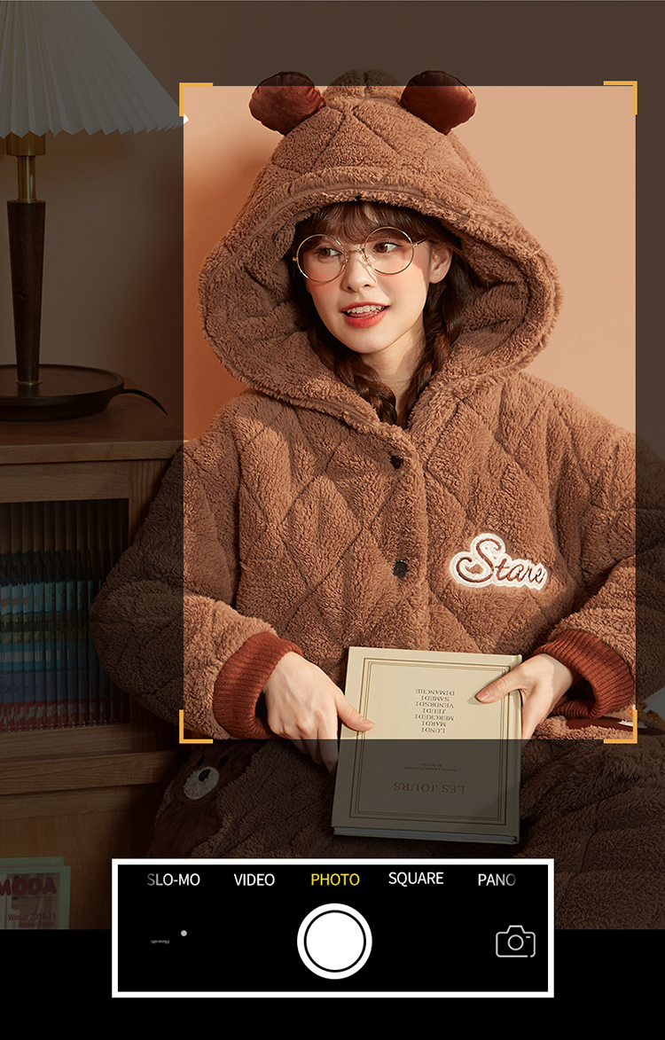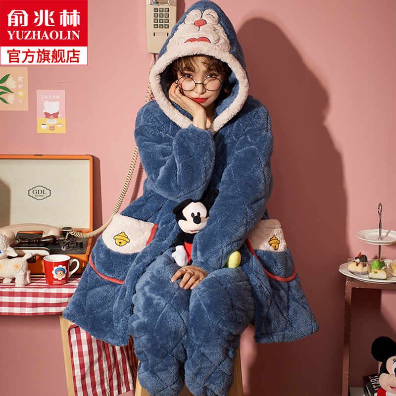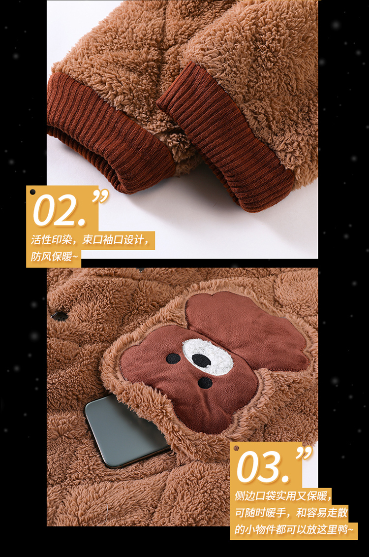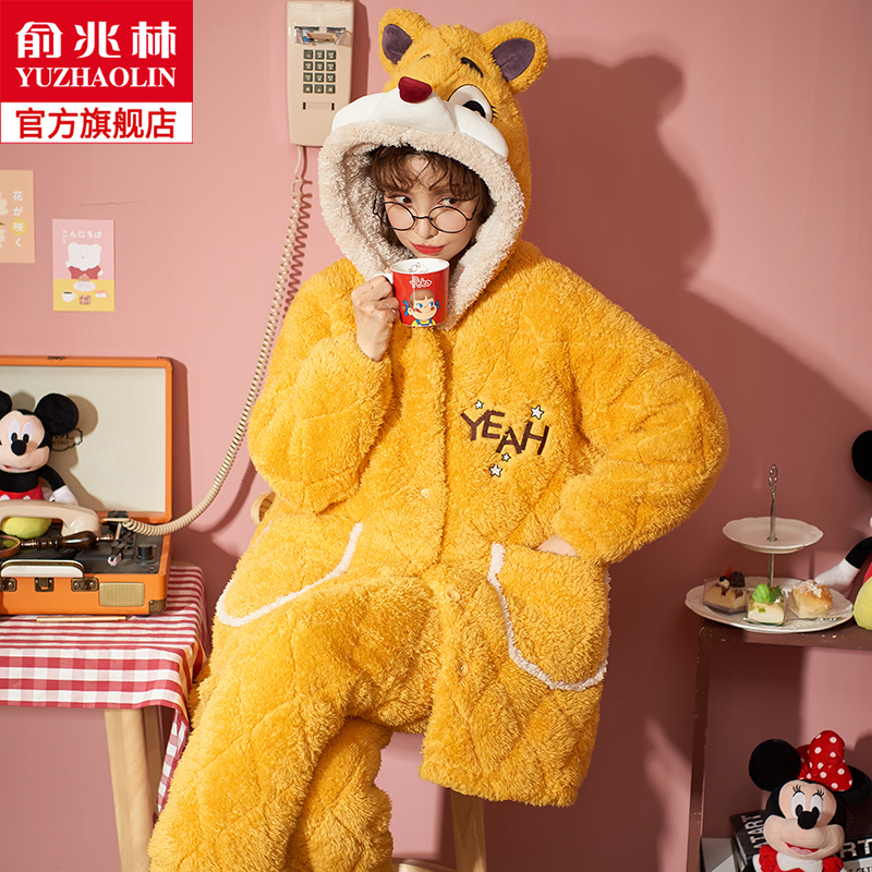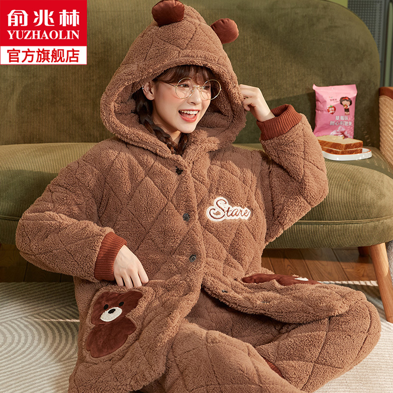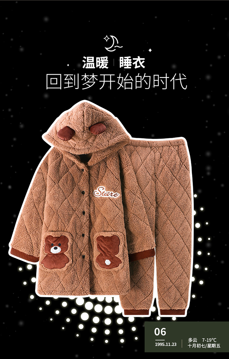 Зимняя коралловая бархатная утепленная стеганая пижама, мультяшный фланелевый комплект, с медвежатами