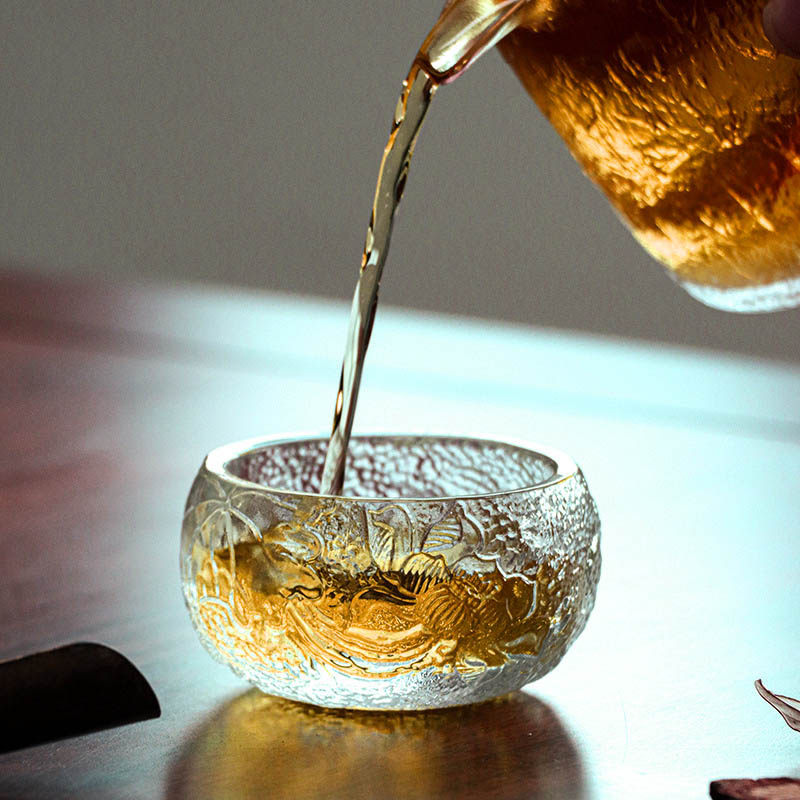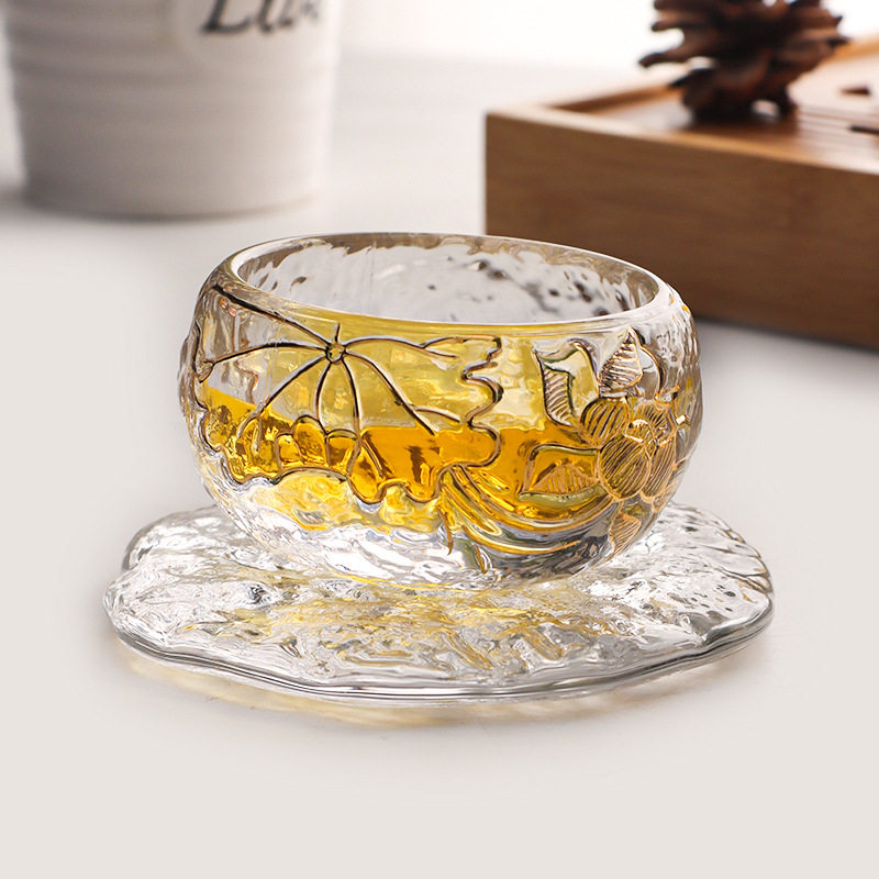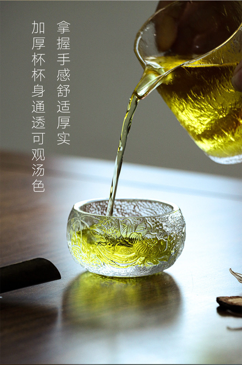 Китайская стиль стеклянная чашка чашка лотос -булавка чашка мастер чашка прозрачная чайная чая чайная чаша высокая чашка тоже маленький чай тоже маленький чай
