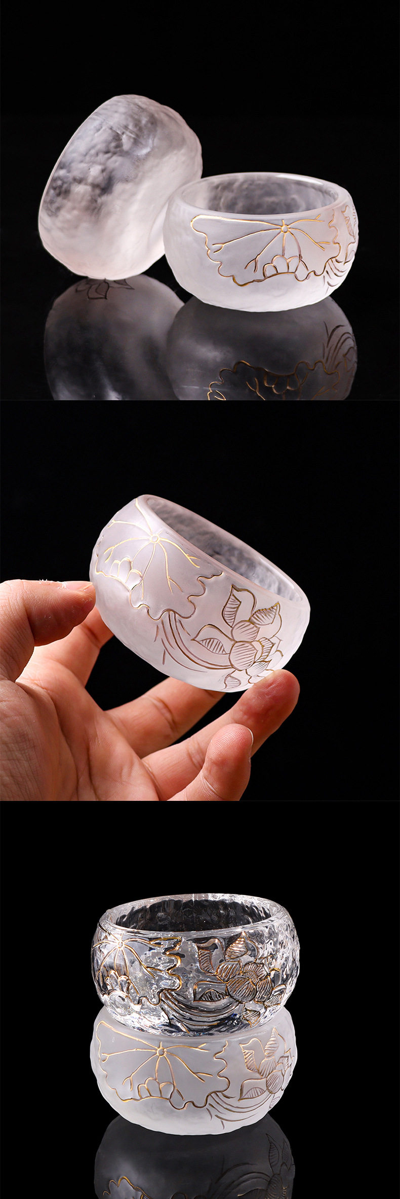 - Прозрачная золотая чашка лотоса + подставка