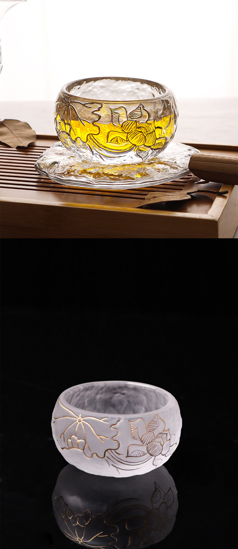 - Прозрачная чашка лотоса + блюдце.