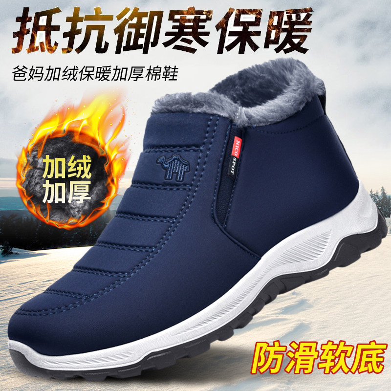 Зимняя обувь из старой пекинской ткани, мужская обувь из хлопка и бархата, чтобы согреться, папина обувь, нескользящая мягкая подошва, прогулочная обувь для среднего и пожилого возраста