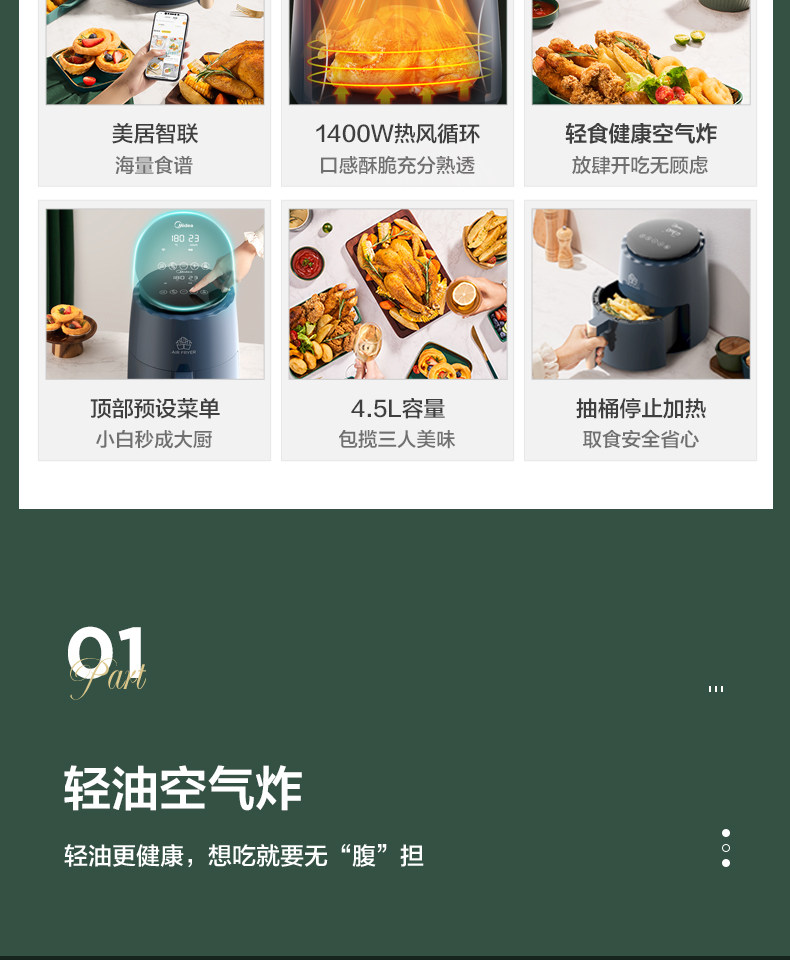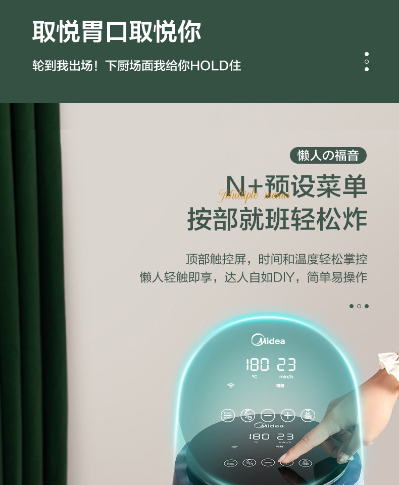 Midea Air Fried Pot Домохозяйство Автоматическое интеллектуальное жареное жаренное жаренное горшок с жарким горшком Электрический горшок с большим объемом Multi -Function 2021 Новая модель