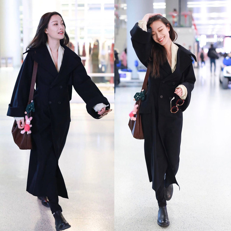 EXJR Черный двусторонний корсет, шерстяное шерстяное пальто, куртка