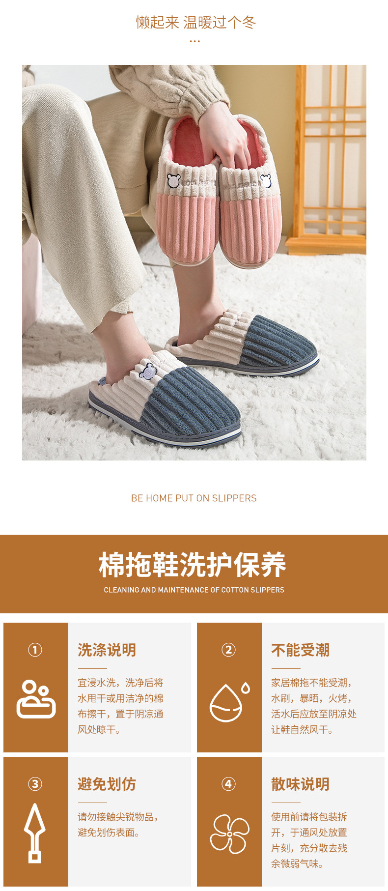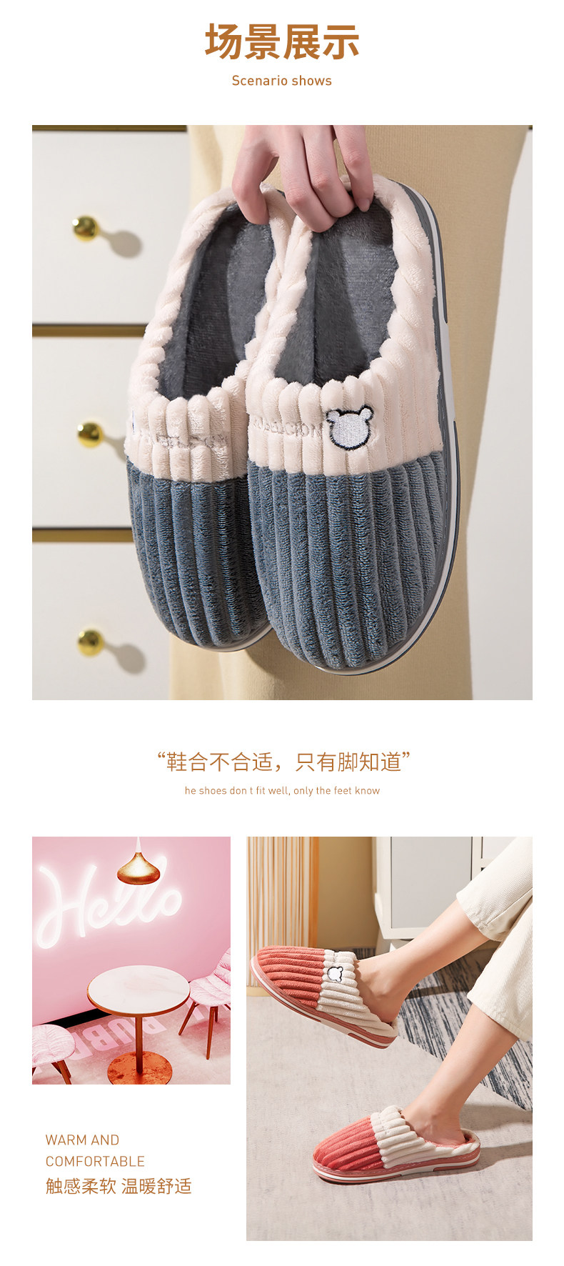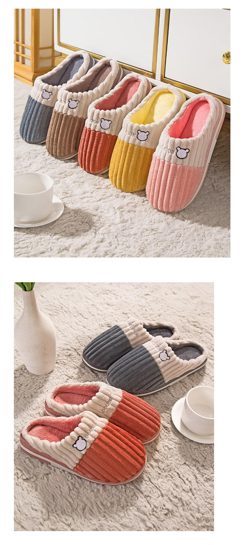 Демисезонные удерживающие тепло нескользящие мультяшные зимние тапочки, для влюбленных