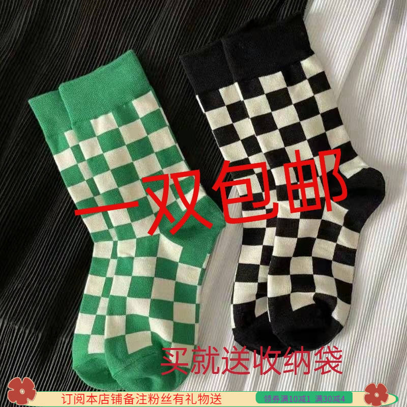 Носки, белые цветные осенние шахматы для влюбленных, средней длины, популярно в интернете