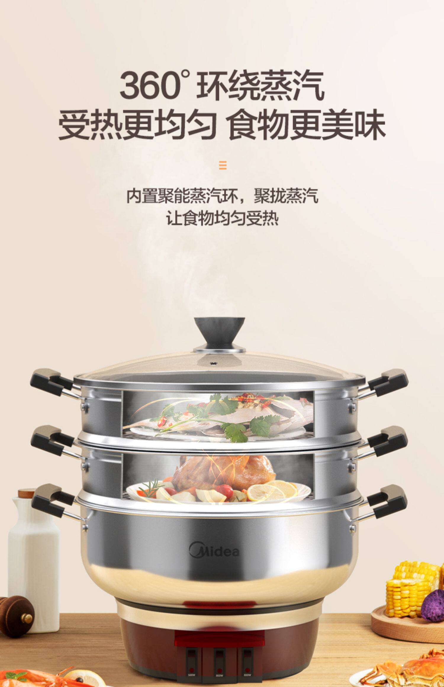 Универсальная вместительная и большая антибактериальная пароварка из нержавеющей стали, трехслойная вуаль