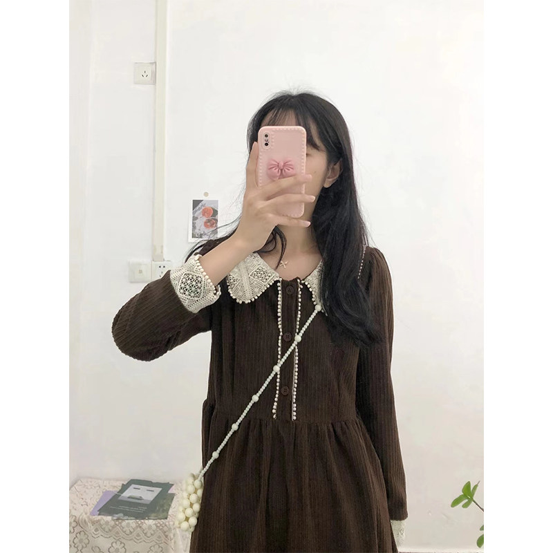 Кукла, вельветовое платье, демисезонная длинная юбка, 2021 года, новая коллекция, кукольный воротник