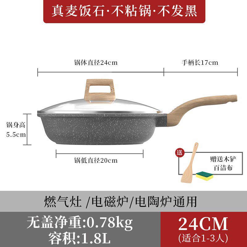 - 24 см жареная кастрюля с крышкой [черная серая пшеничная рисовая камень]