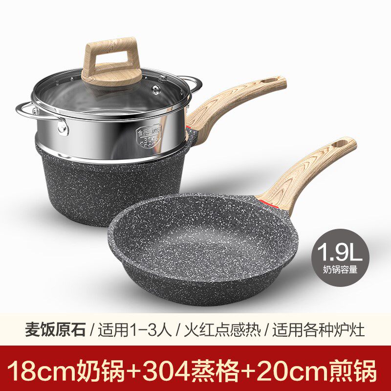 - Сковорода 20 см + кастрюля для молока 18 см [черный серый медицинский камень]