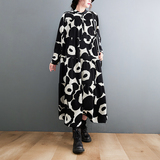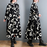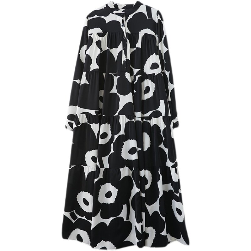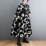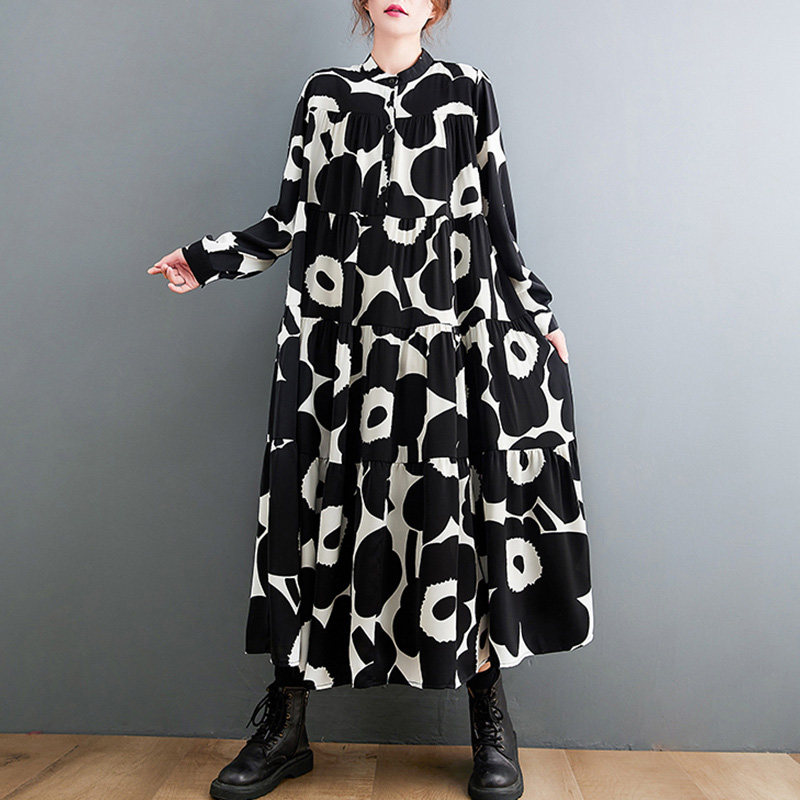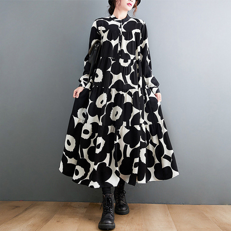 Осеннее платье, лонгслив, рубашка, длинная юбка, в цветочек, большой размер, А-силуэт