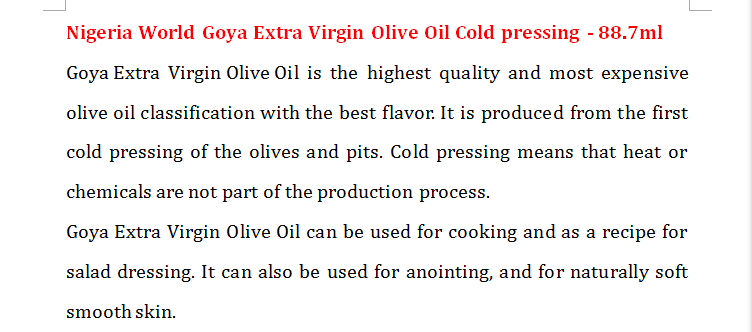 Нигерия мира гойя, оливковое масло оливкового масла, простуда 88 мл