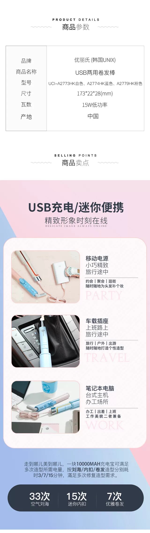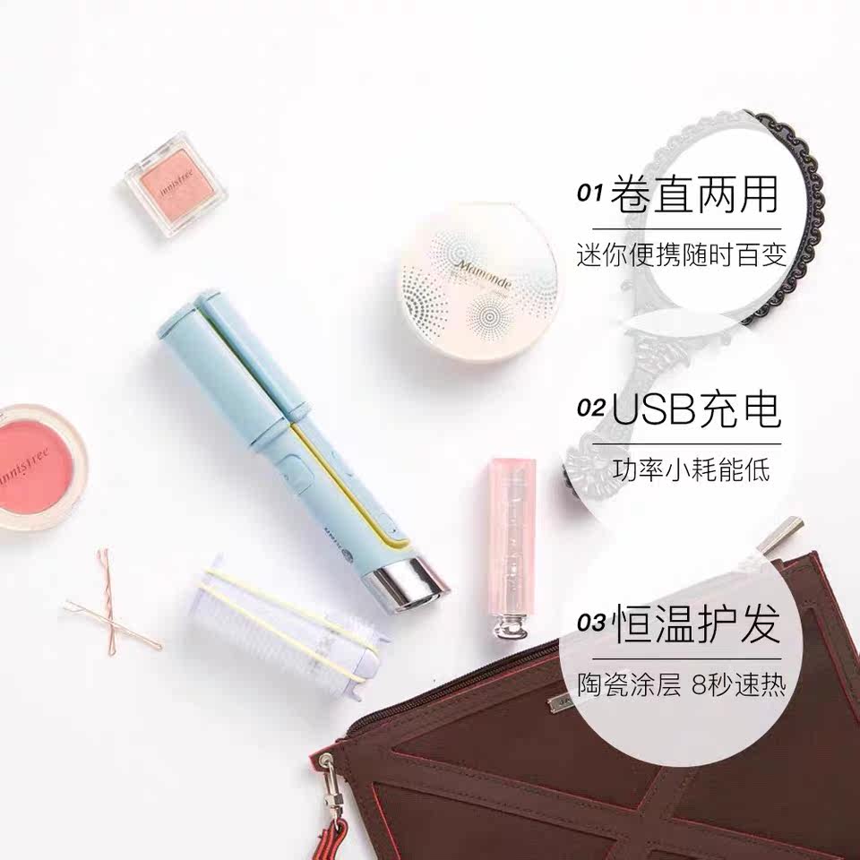 Круглая цена 400+!Южная Корея Unix Curly Grole Dual -Eruge USB -зарядка модель Bangs Mini -Convenuient прямые волосы