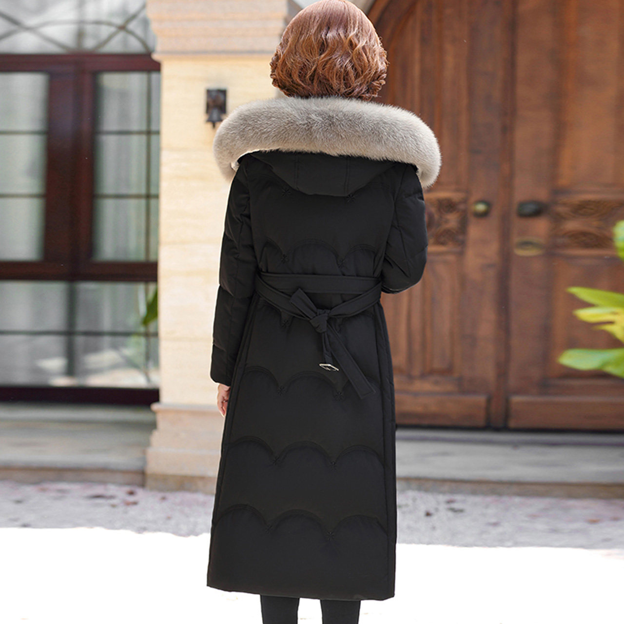 Демисезонный приталенный корсет, длинный пуховик для матери, облегающий крой, яркий броский стиль