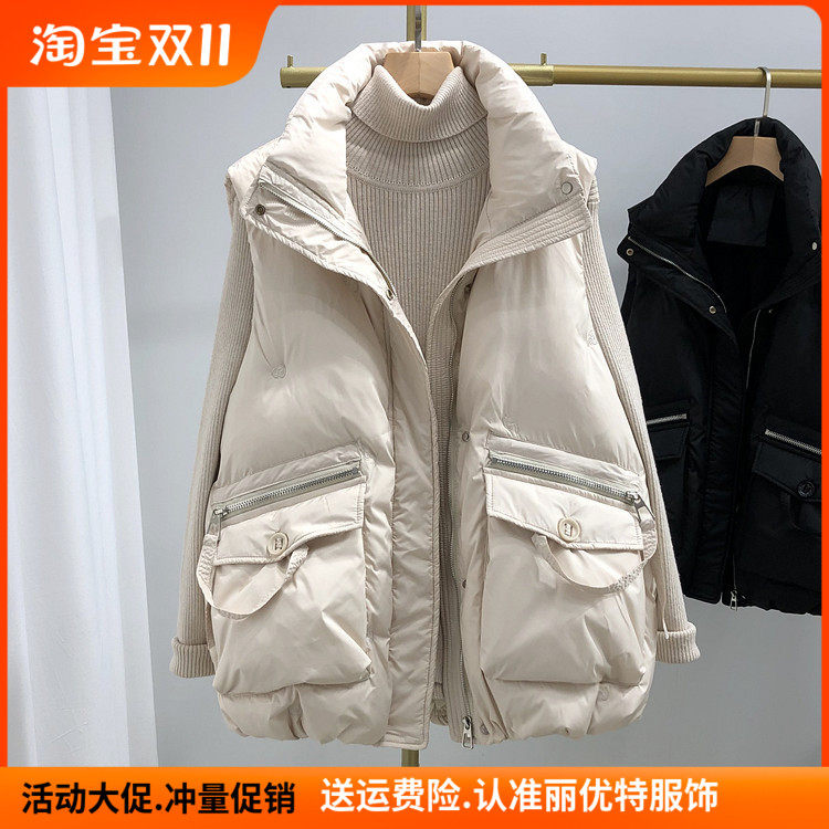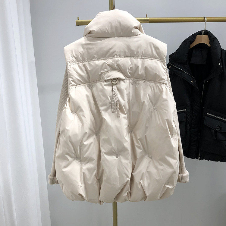 Пуховик, бархатный демисезонный жилет, утиный пух, увеличенная толщина