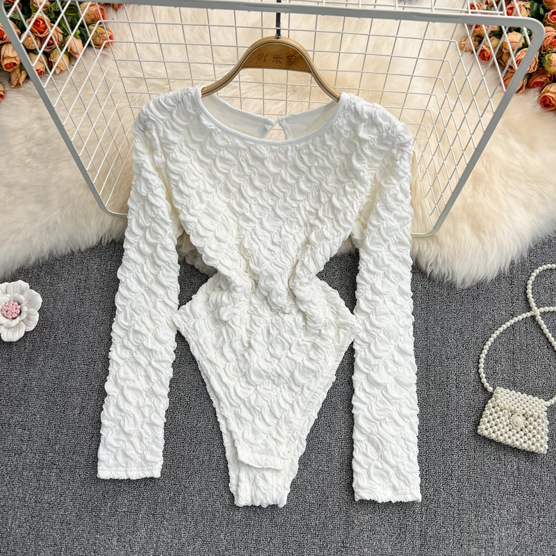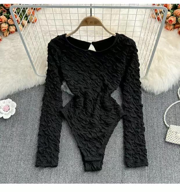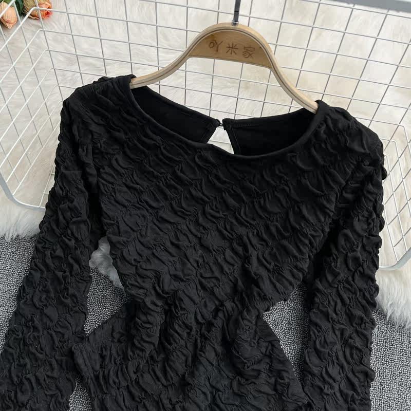 Демисезонный модный лонгслив с круглым воротником, базовая приятная телу футболка, в корейском стиле, рукава фонарики