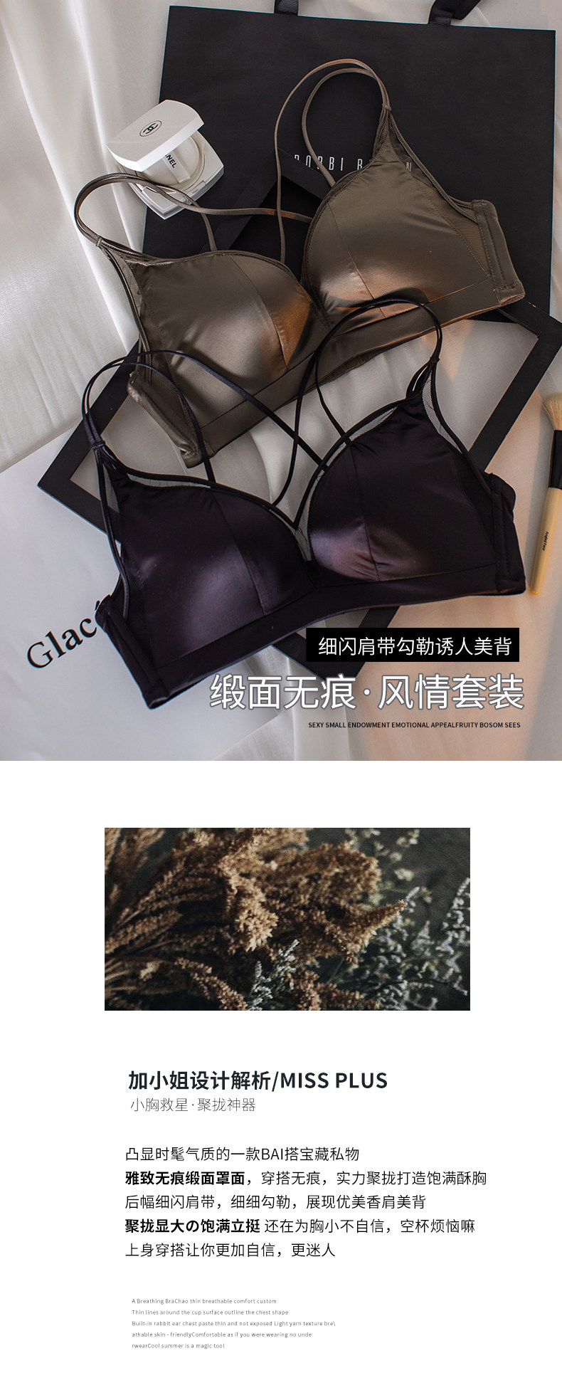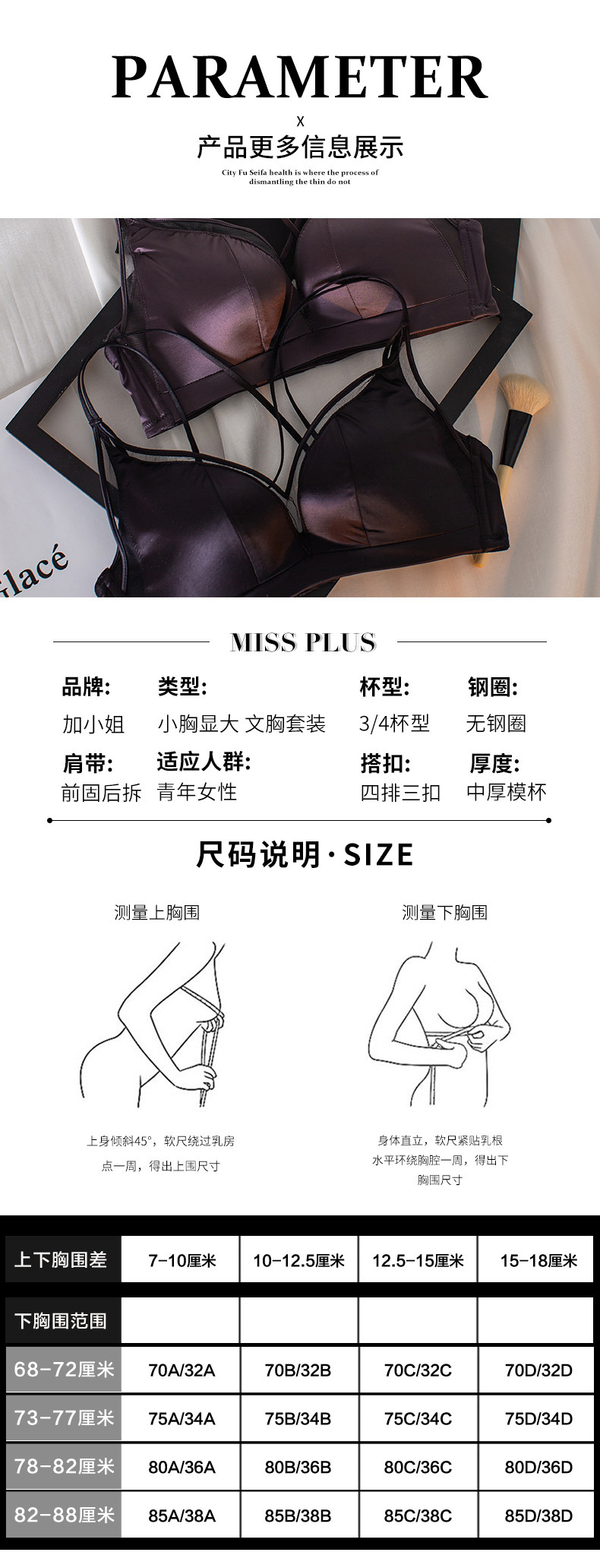 Поддерживающее нижнее белье, поддерживающий бюстгальтер без косточек, бюстгалтер, комплект, большой размер, красивая спина, по фигуре