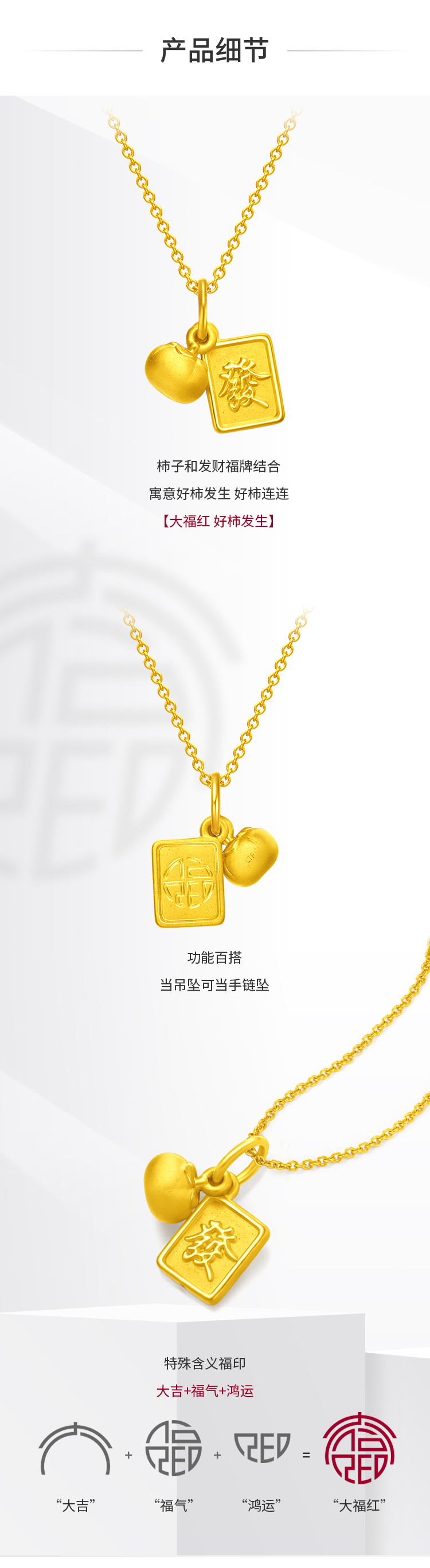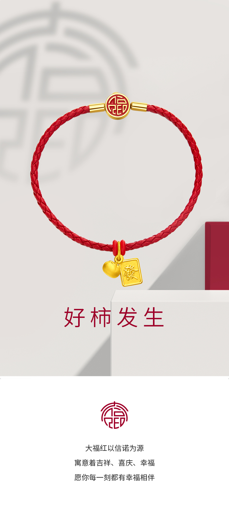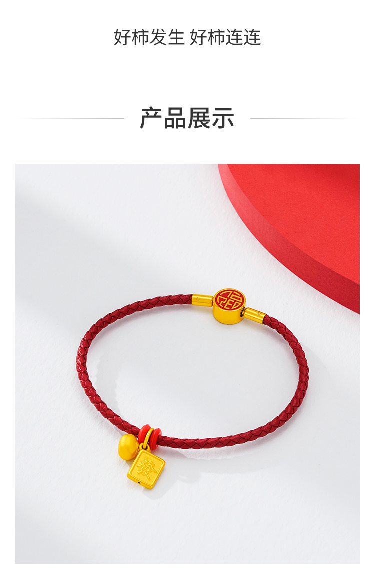 周大福 Культурное благословение Хорошие хурмы встречаются с золотым золотым подвеской для ручной веревки Eor566
