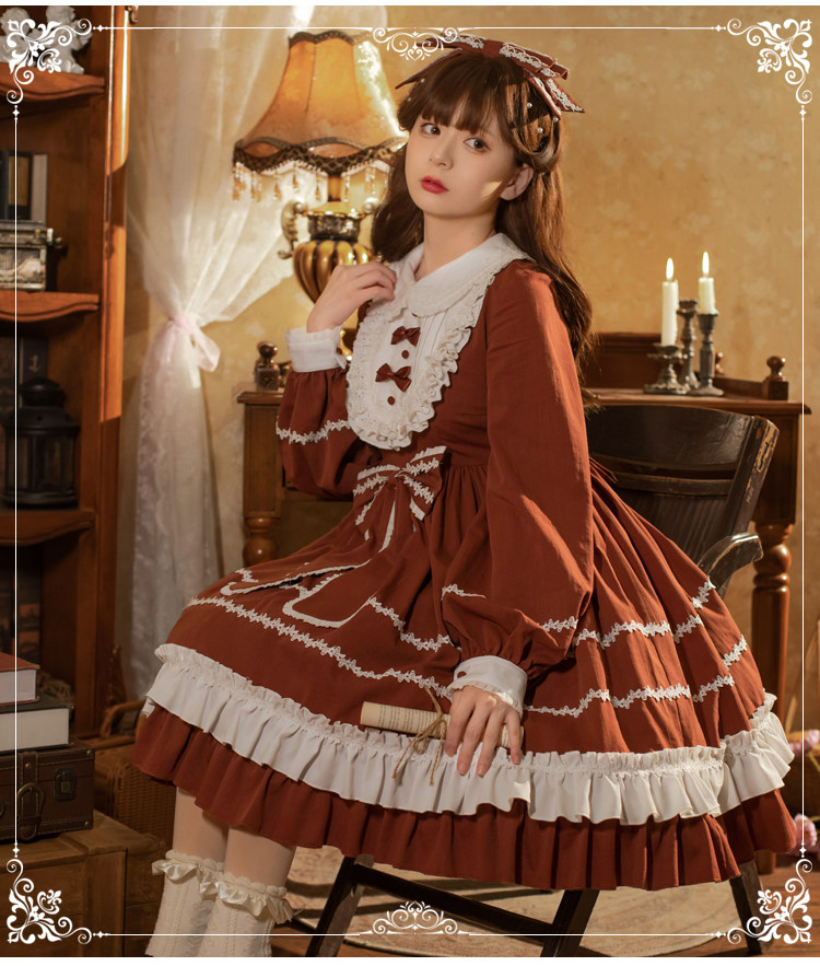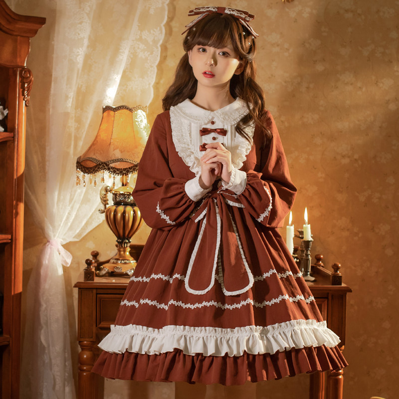 Юбка, ретро оригинальный лонгслив, дизайнерский наряд маленькой принцессы, стиль Лолита, Lolita OP, (в наличии на складе)