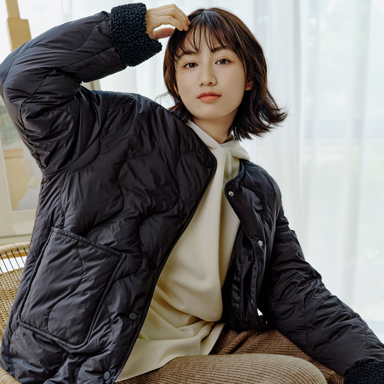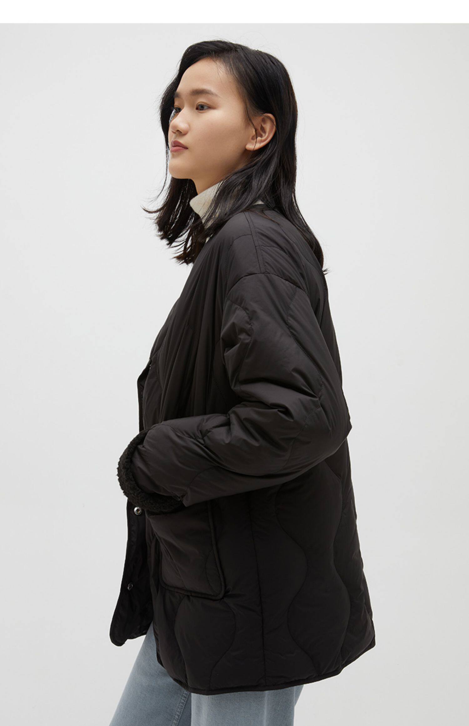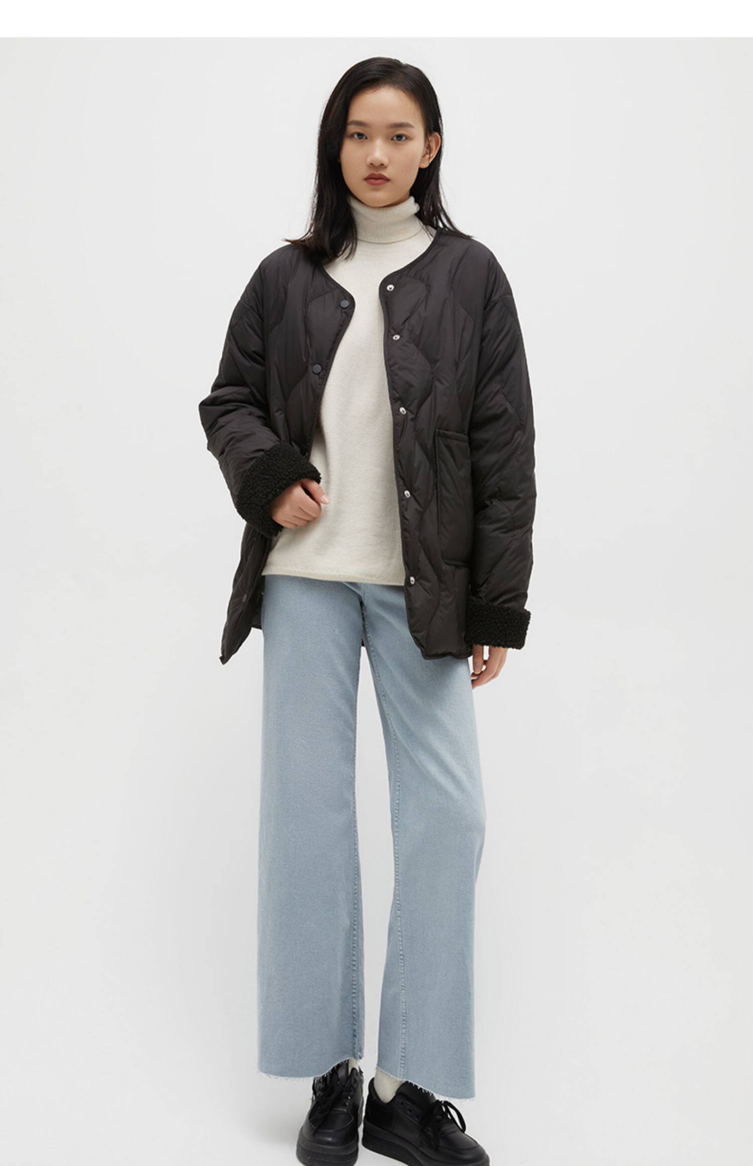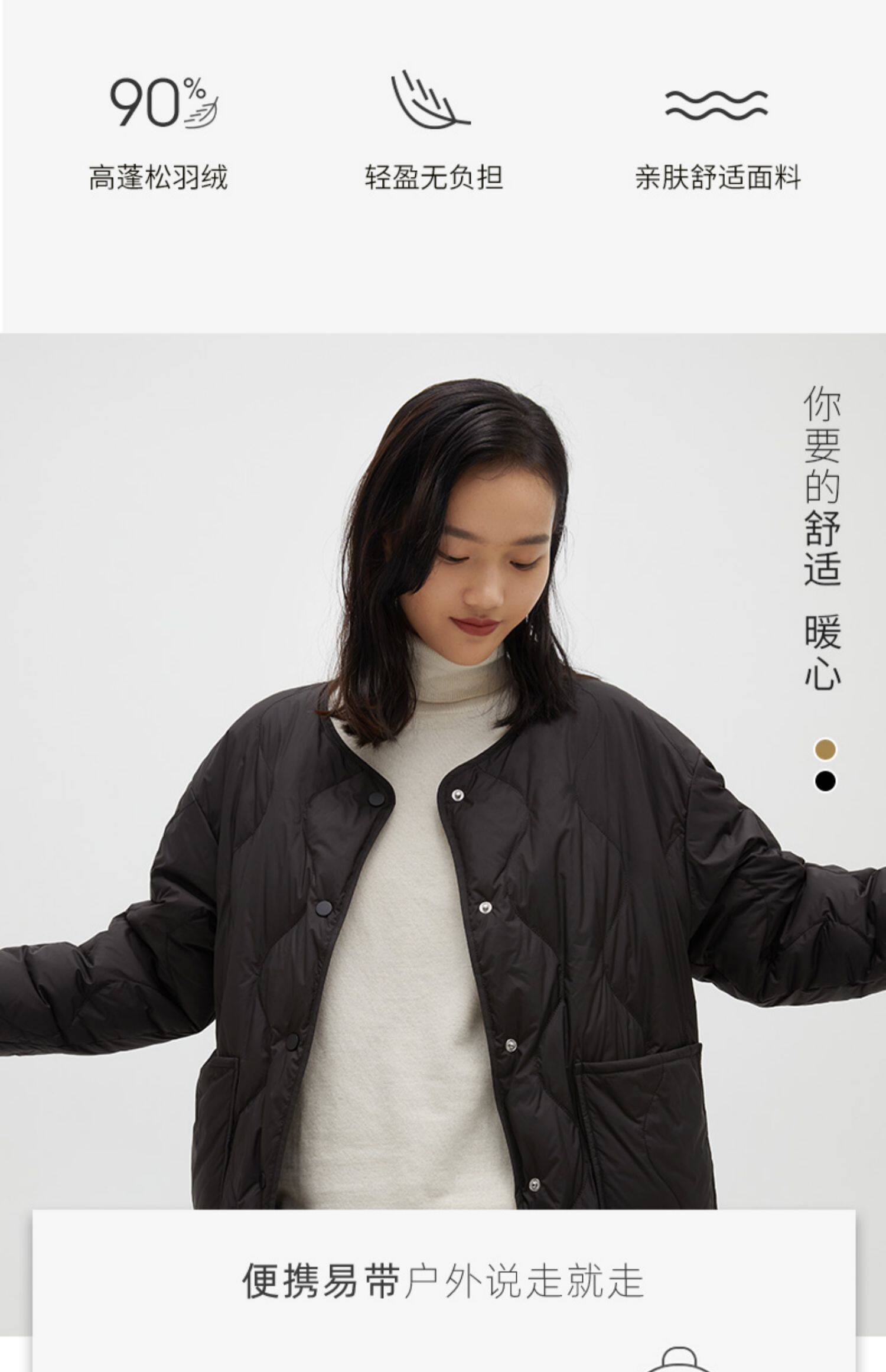 Демисезонный комфортный короткий пуховик с круглым воротником, коллекция 2021, городской стиль