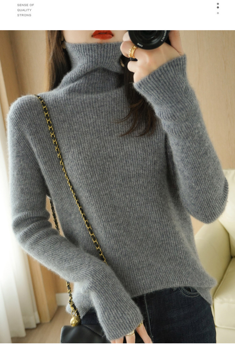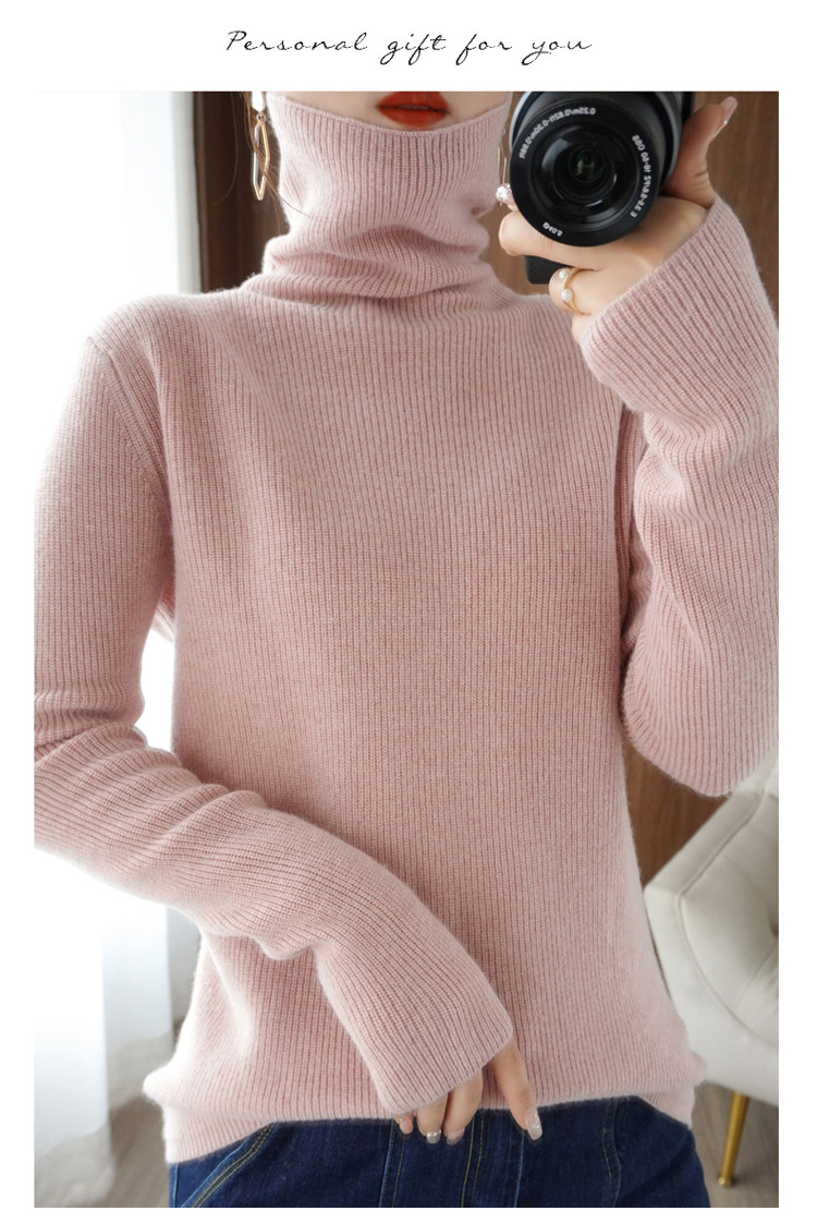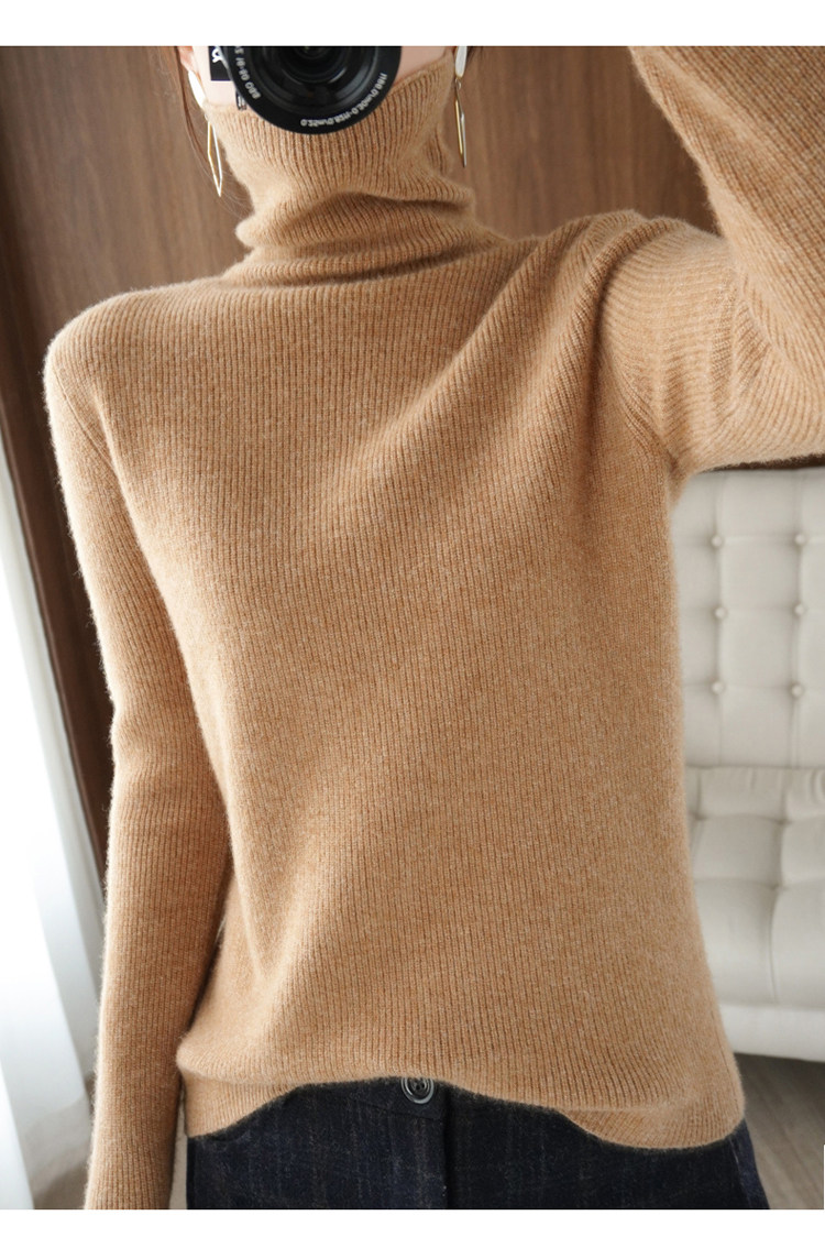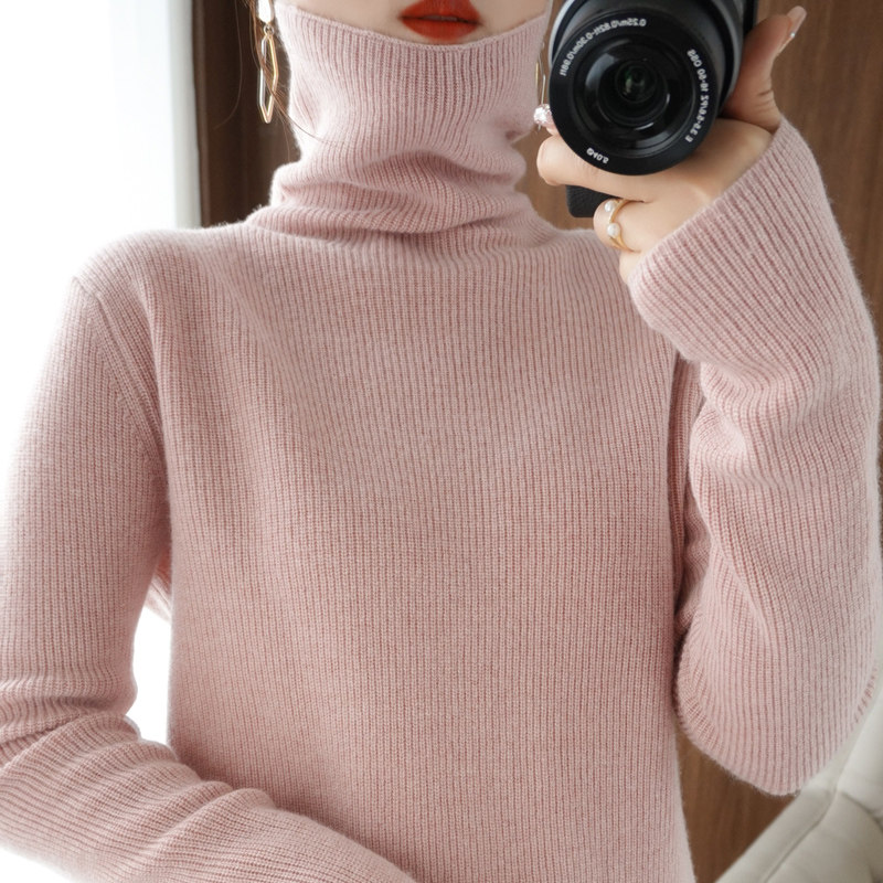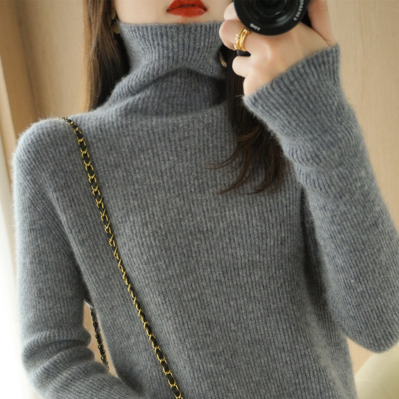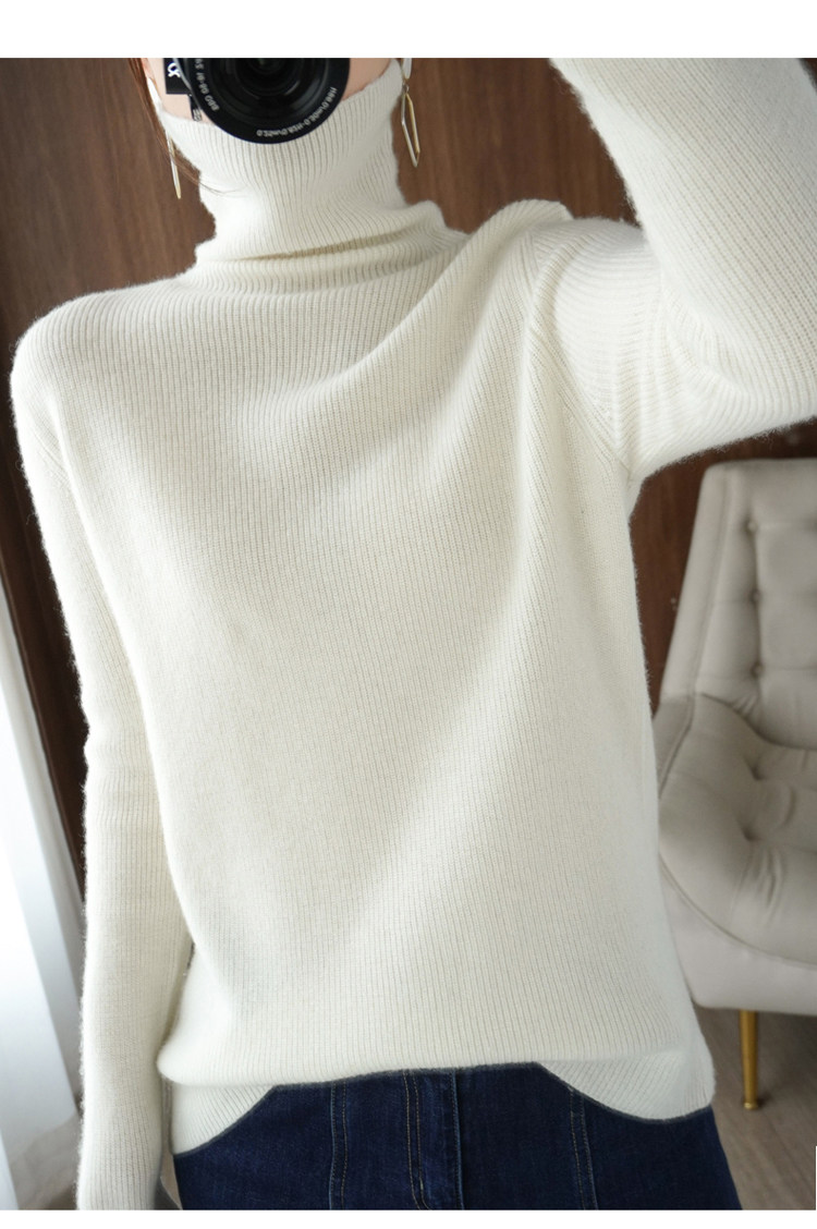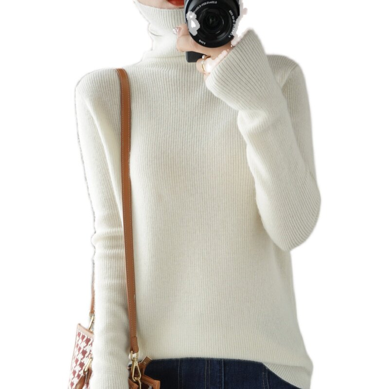 Демисезонный кашемировый шерстяной трикотажный свитер, высокий воротник