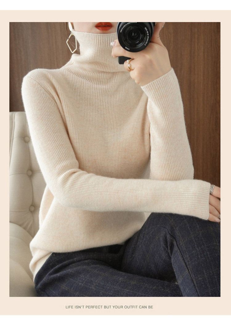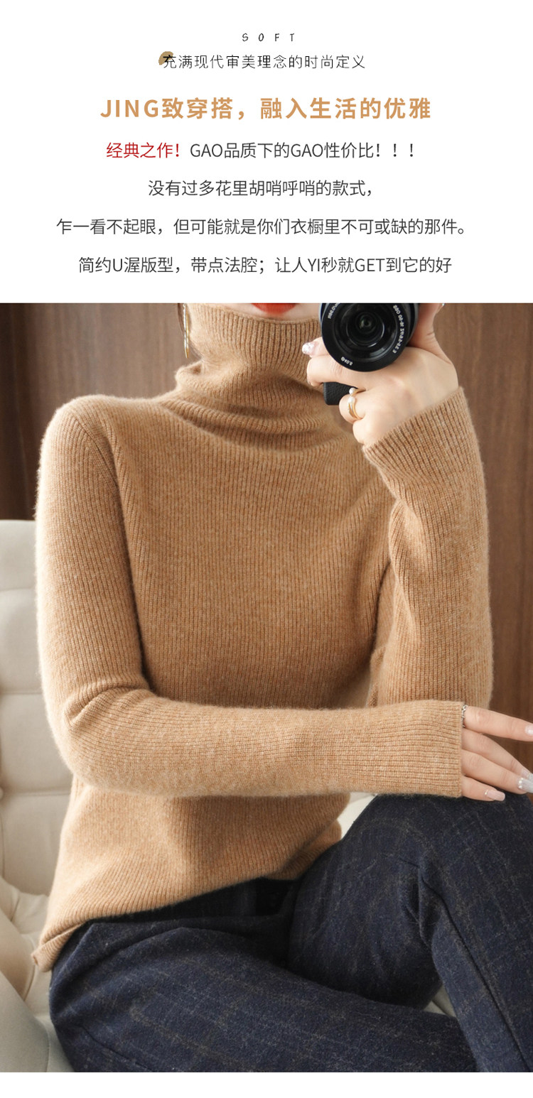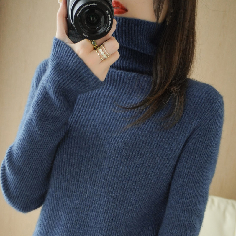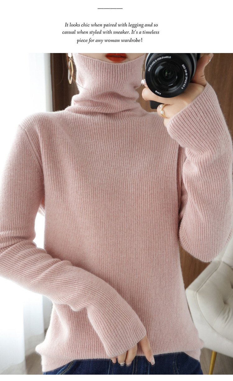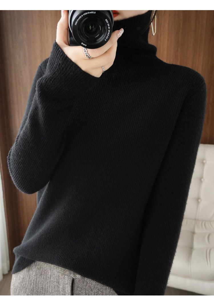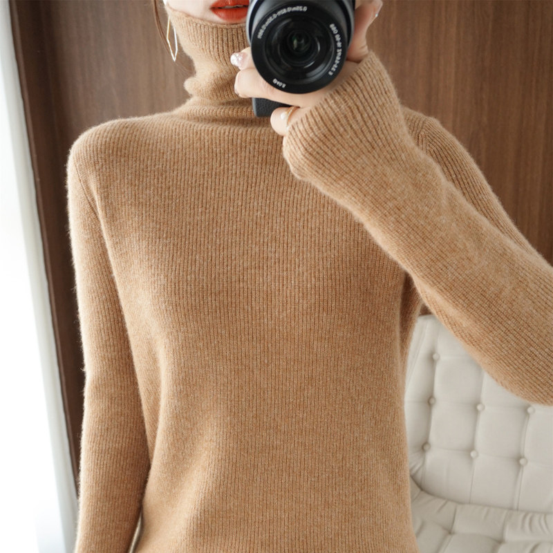 Демисезонный кашемировый шерстяной трикотажный свитер, высокий воротник