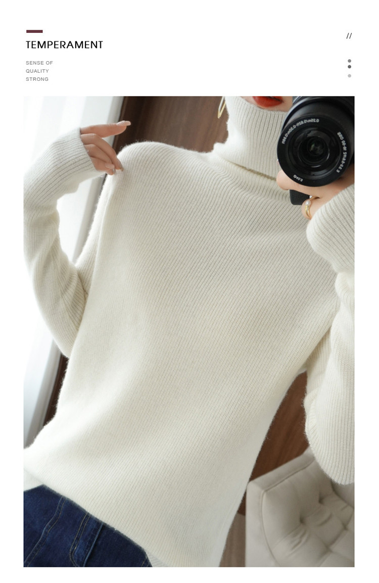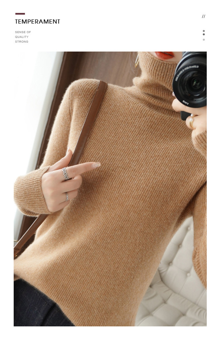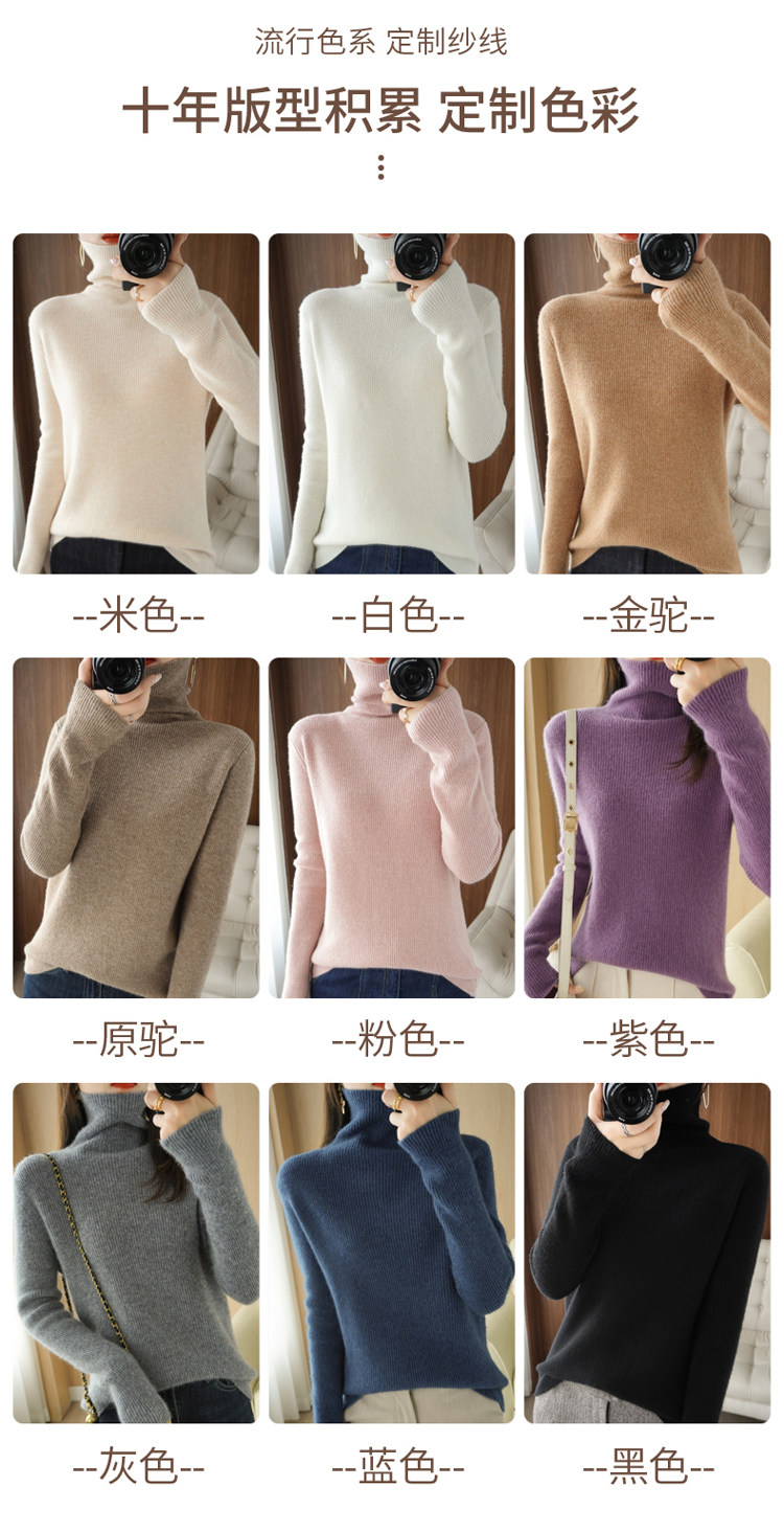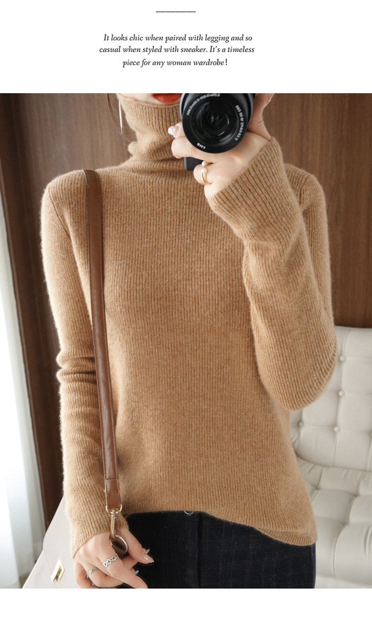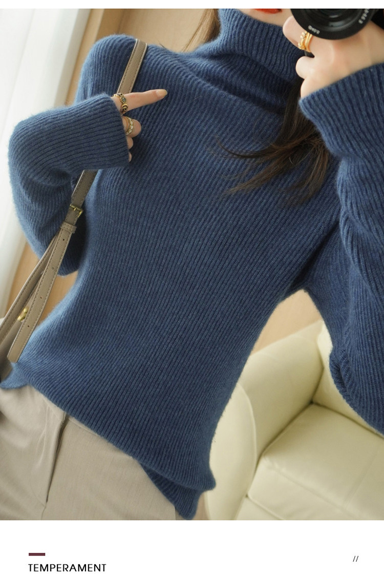 Демисезонный кашемировый шерстяной трикотажный свитер, высокий воротник