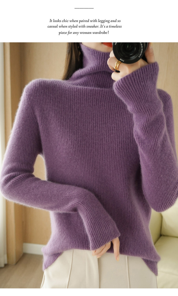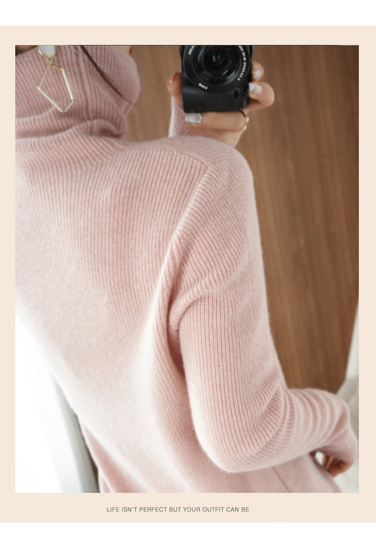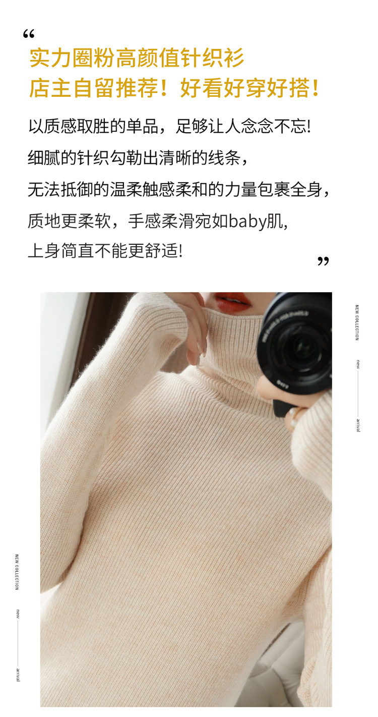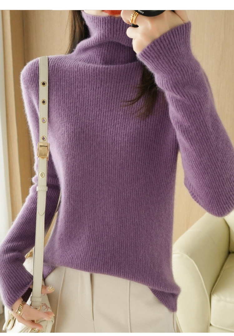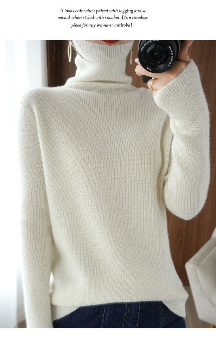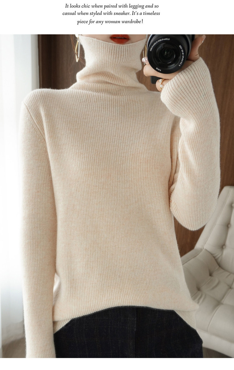 Демисезонный кашемировый шерстяной трикотажный свитер, высокий воротник