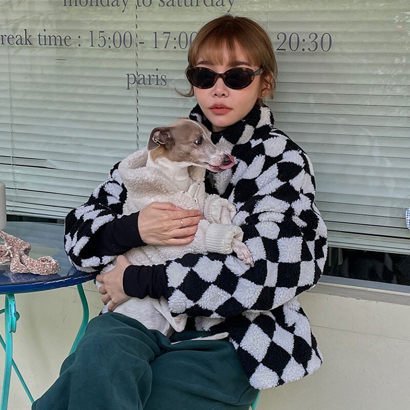 Осенние удерживающие тепло бархатные шахматы, куртка, Южная Корея, оверсайз