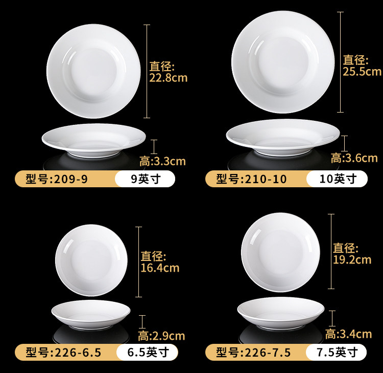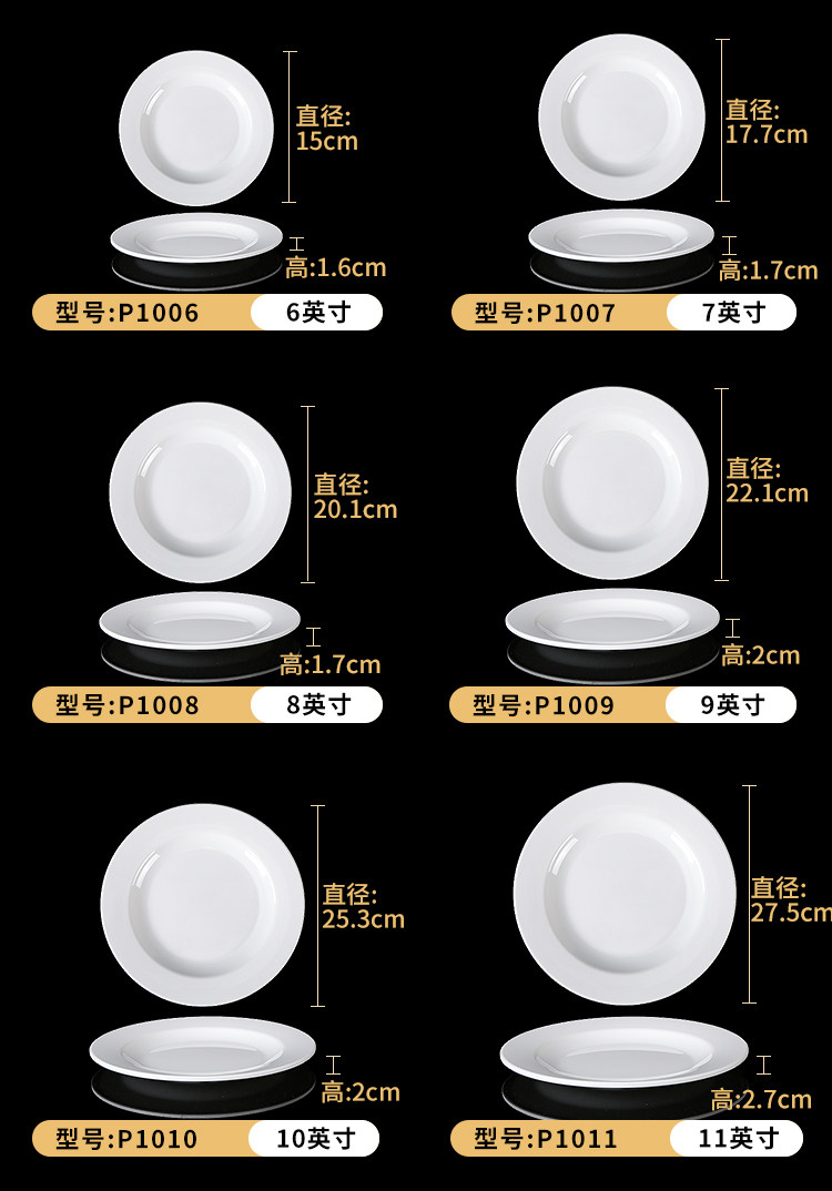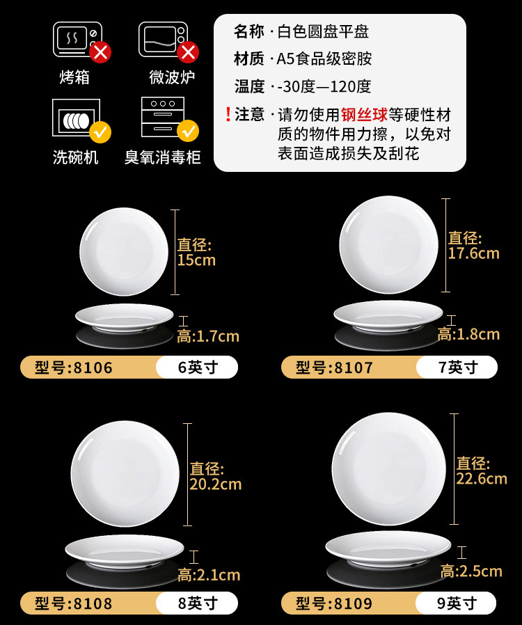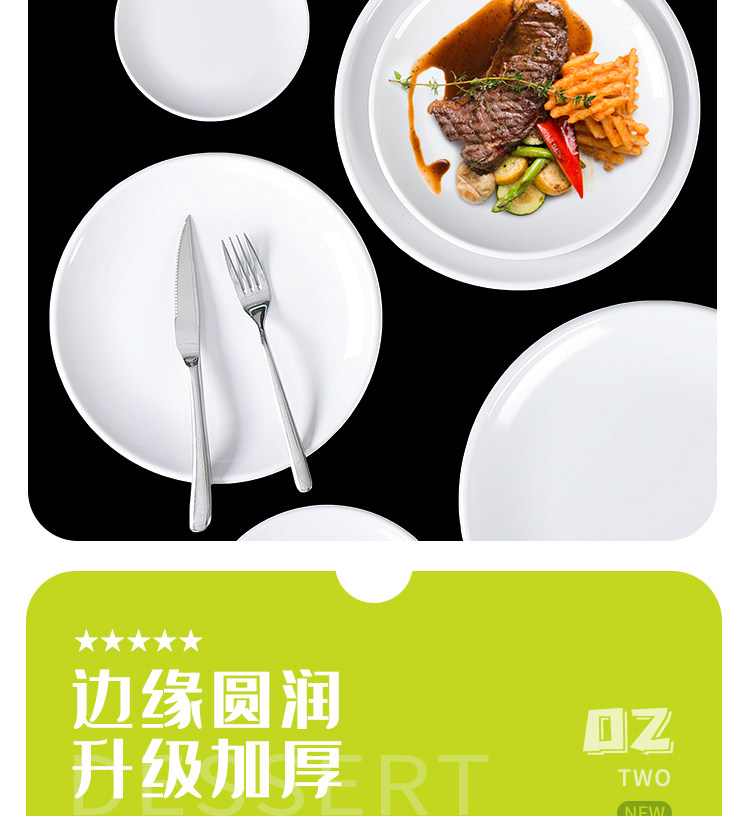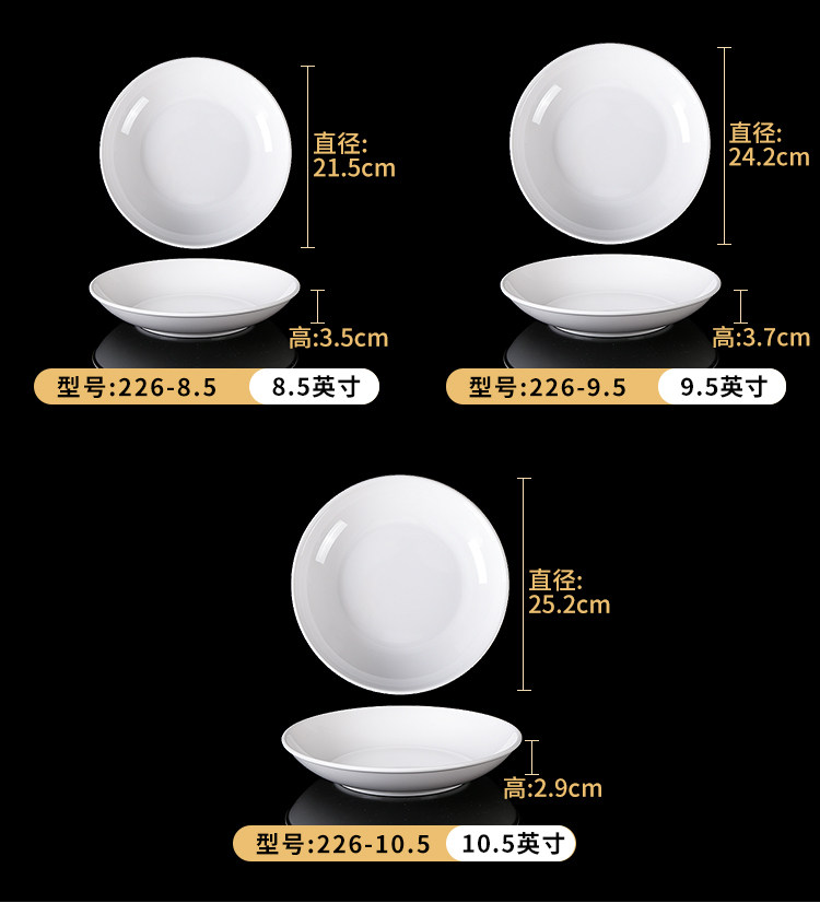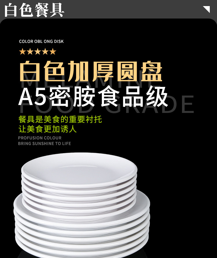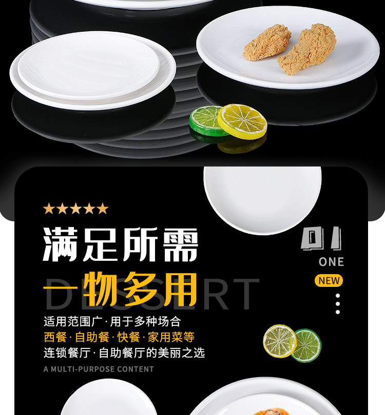 Милидальная тарелка Коммерческое белое диск пластиковая посуда ресторан ресторан говяжий стейк неглубокая тарелка для костной тарелки посуда