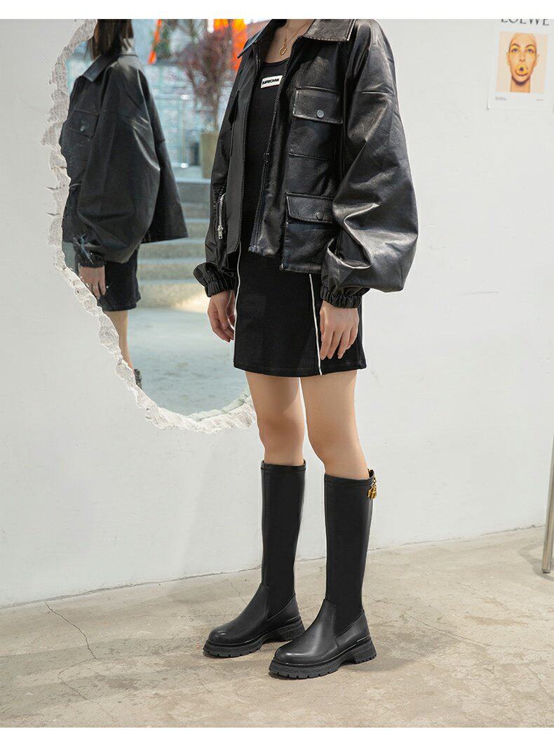Зимние черные флисовые удерживающие тепло высокие сапоги, коллекция 2021, по фигуре